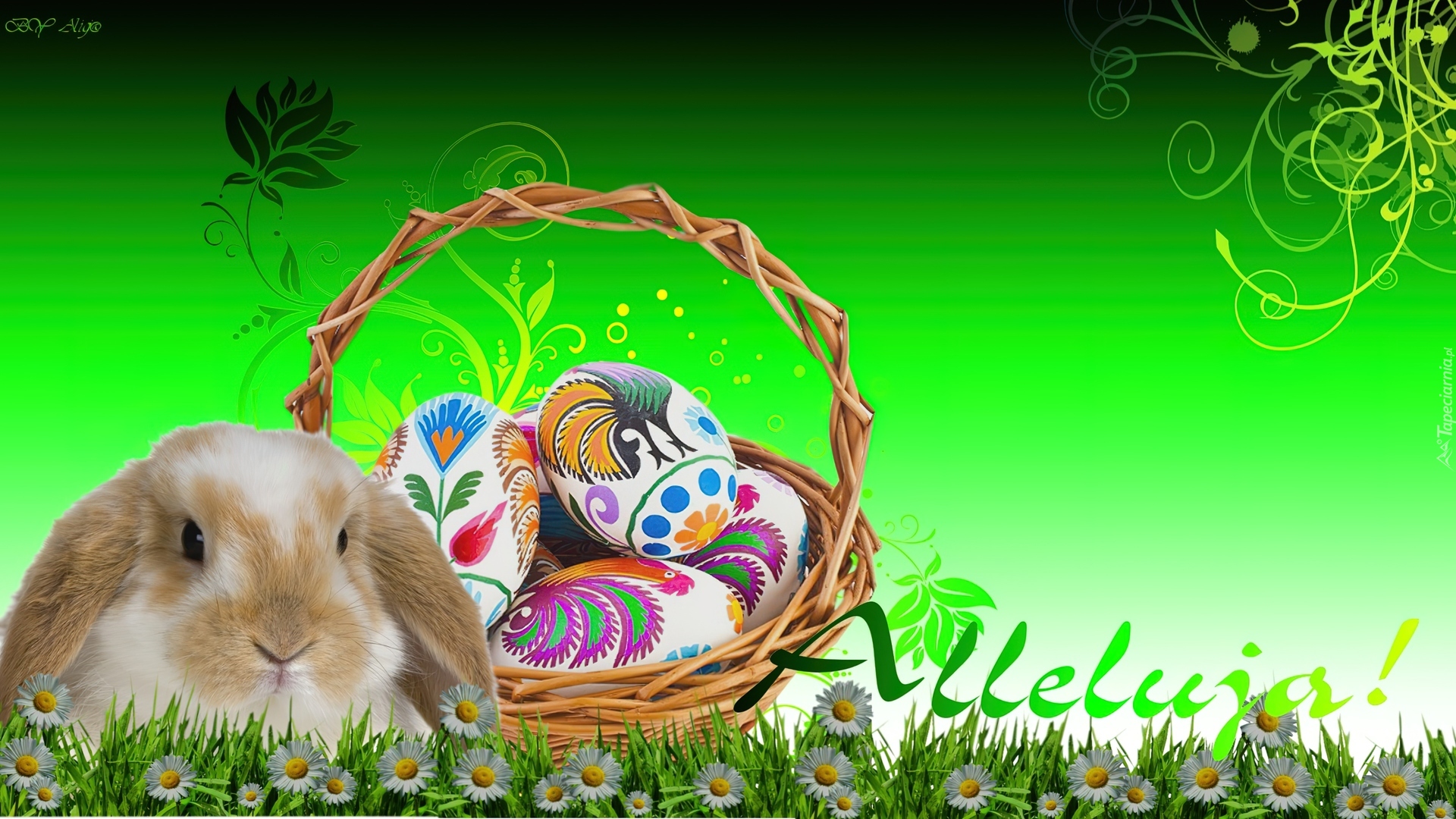 Edytor tapety: Królik, Pisanki, Koszyk