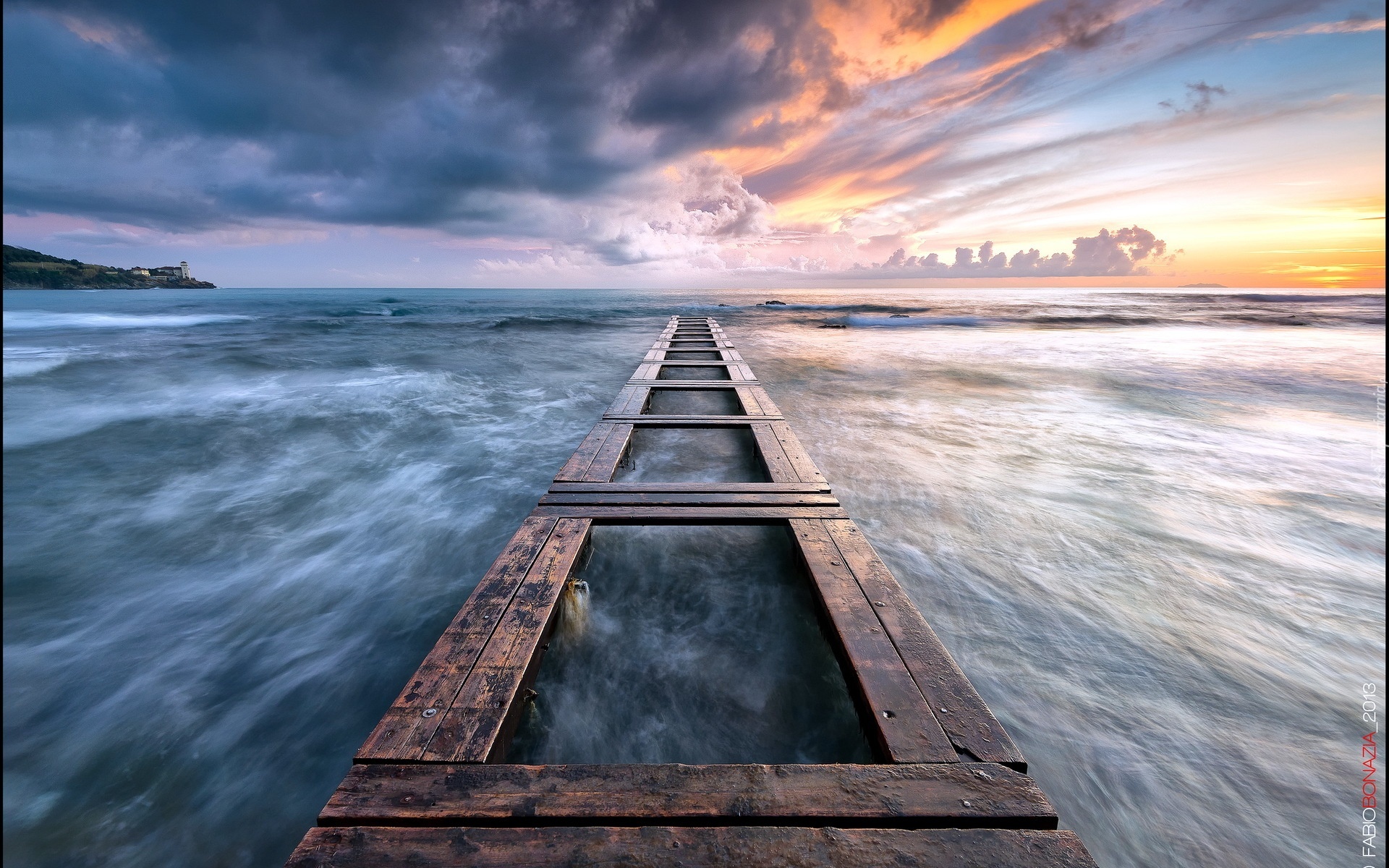 Edytor tapety: Zachód, Słońca, Morze, Pomost