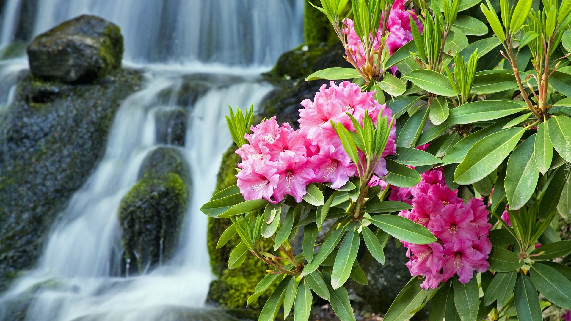 Edytor tapety: Różowy, Rododendron, Wodospad