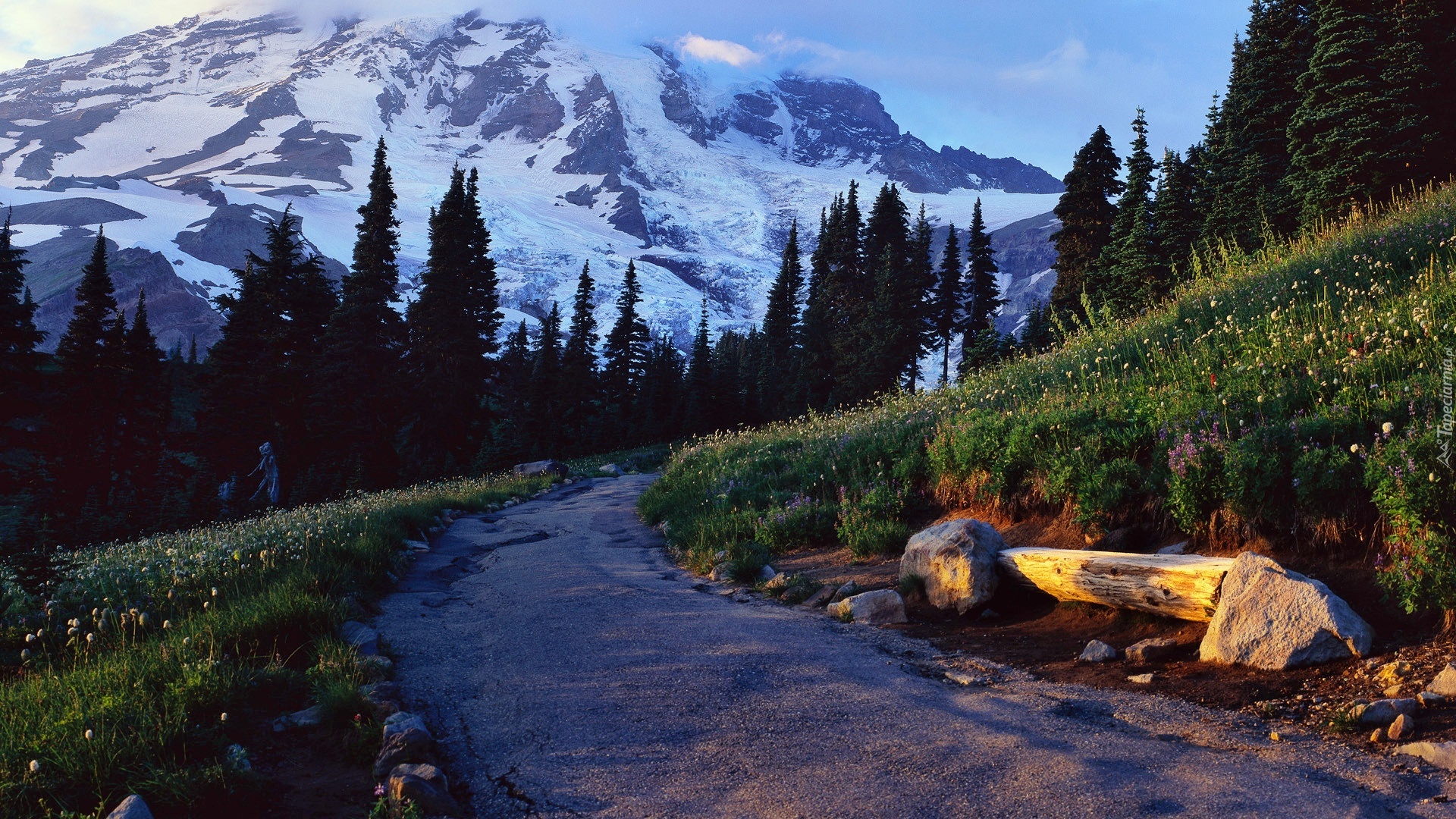 Edytor tapety: Góry, Lasy, Droga, Ławka