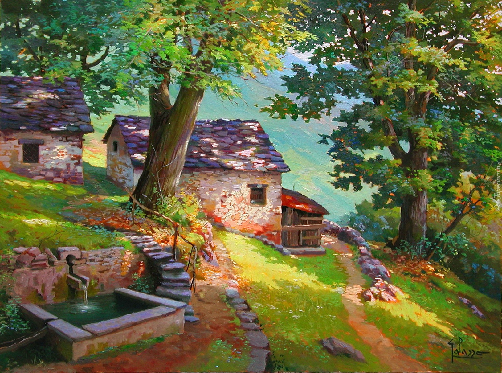 Edytor tapety: Domy, Dróżka, Górka, Studzienka, Drzewa