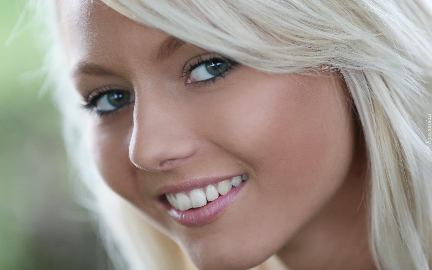Edytor tapety: Uśmiechnięta, Blondynka, Makijaż, Portret