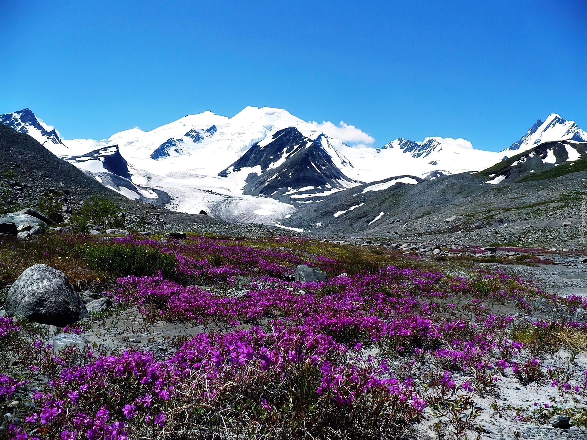 Edytor tapety: Łąka, Górska, Ośnieżone, Szczyty