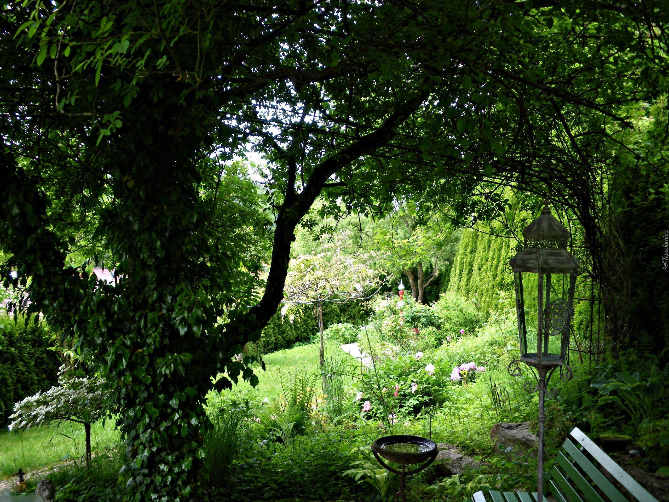 Edytor tapety: Ogród, Ławeczka, Latarenka