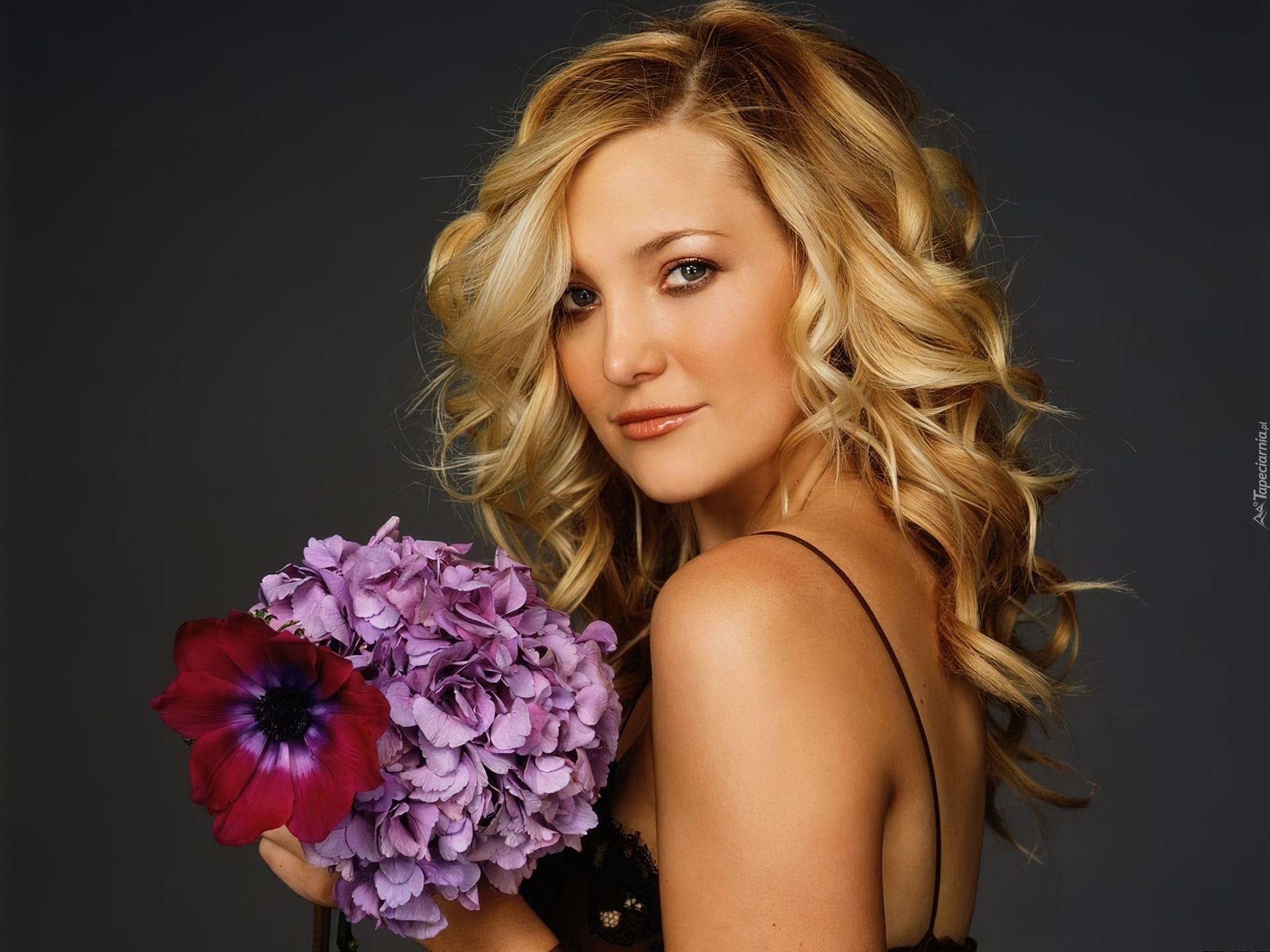 Edytor tapety: Blondynka, Spojrzenie, Kwiaty, Kate Hudson