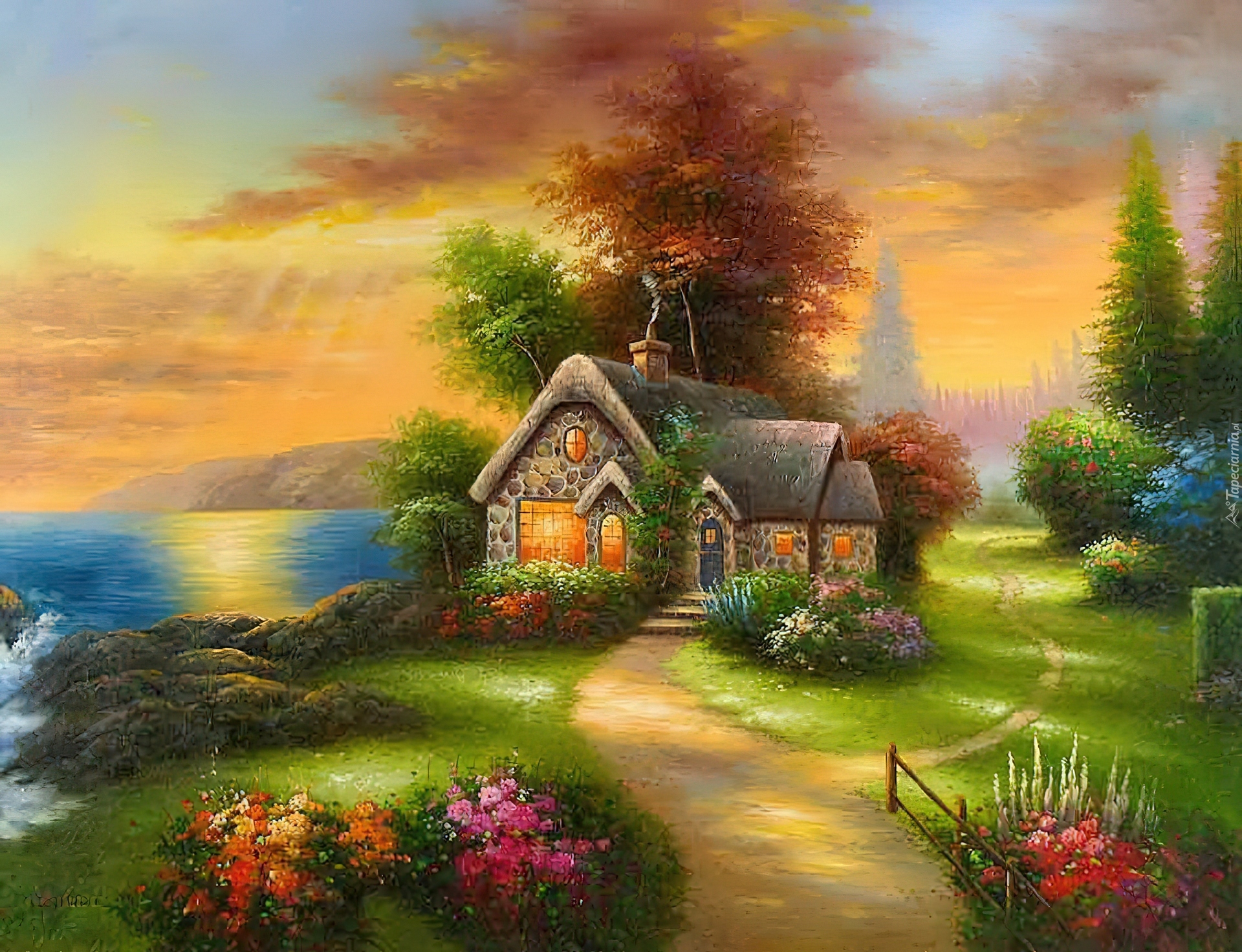 Edytor tapety: Dom, Morze, Dróżki, Ogród