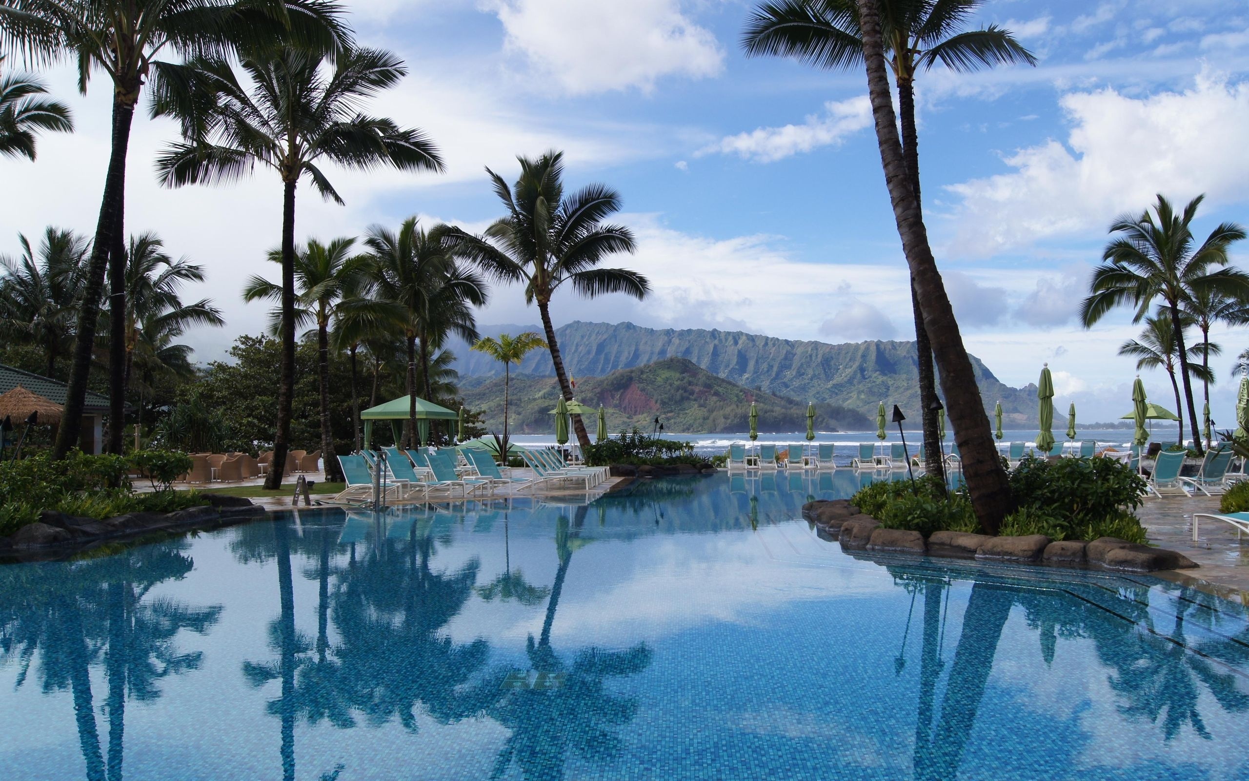 Edytor tapety: Morze, Góry, Hotel, Palmy, Tropiki