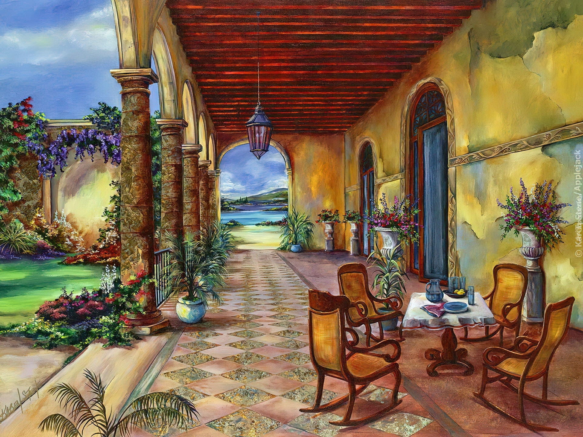 Edytor tapety: Dom, Taras, Stolik, Krzesła