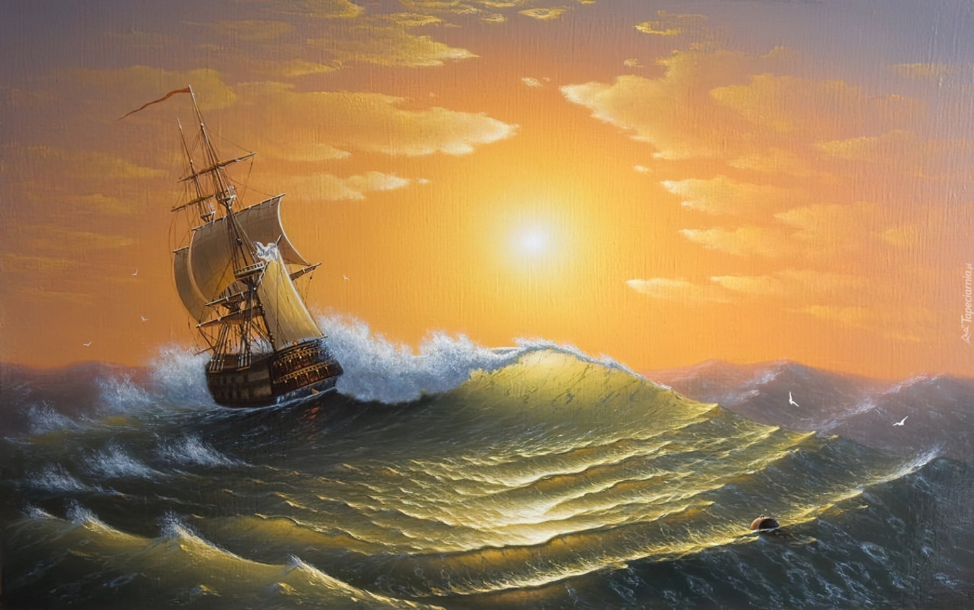Edytor tapety: Morze, Żaglowiec, Zachód, Słońca