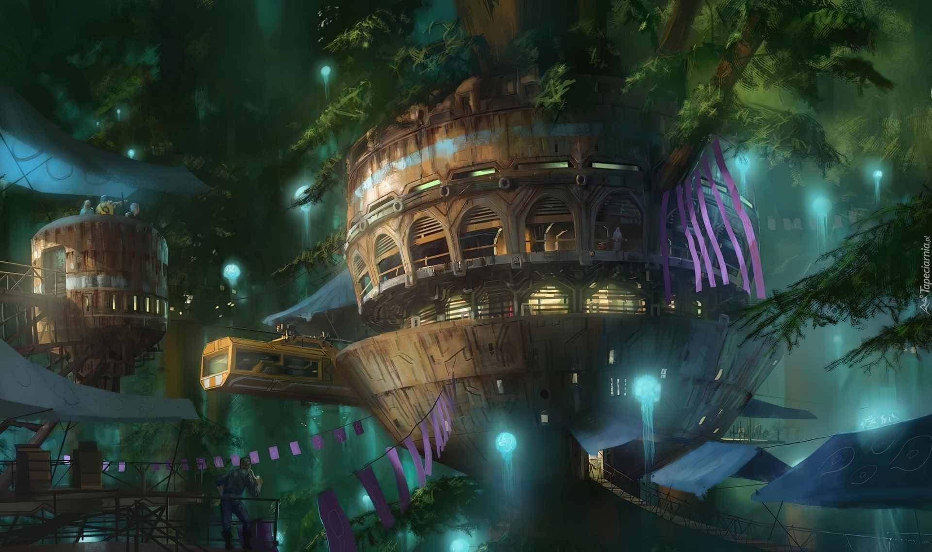 Edytor tapety: Miasto, Las, Domek, Świetliki