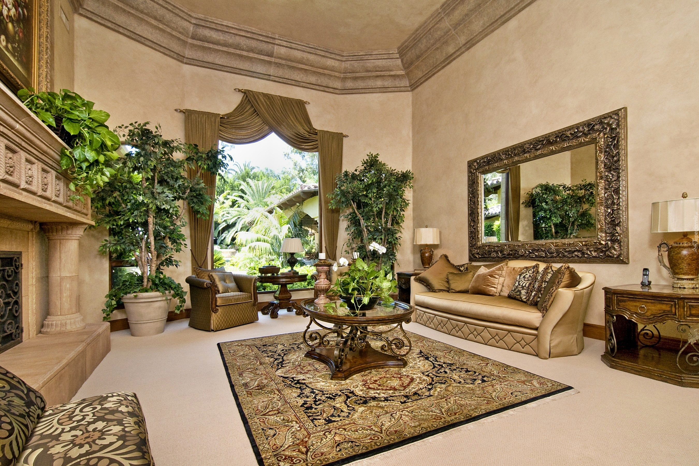 Edytor tapety: Salon, Okno, Kanapa, Fotel, Dywan, Lustro