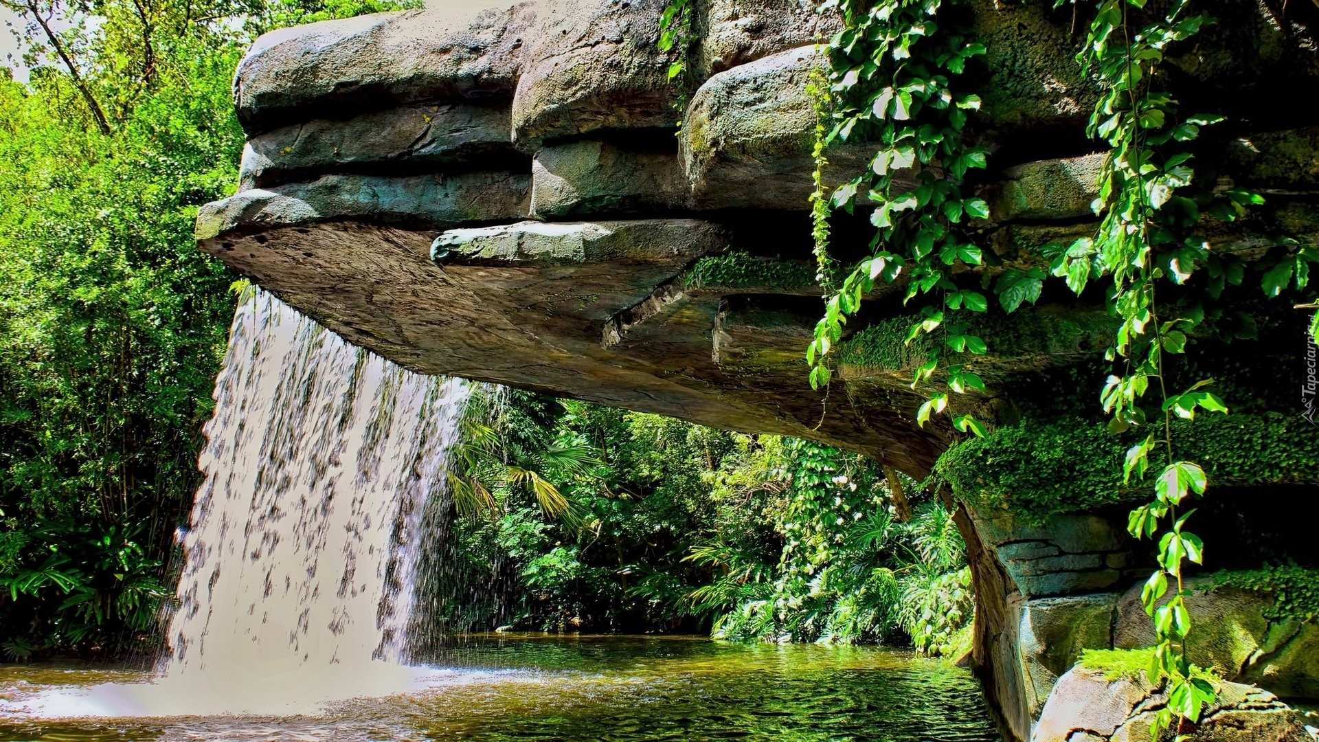 Edytor tapety: Wodospad, Skały, Woda, Zieleń