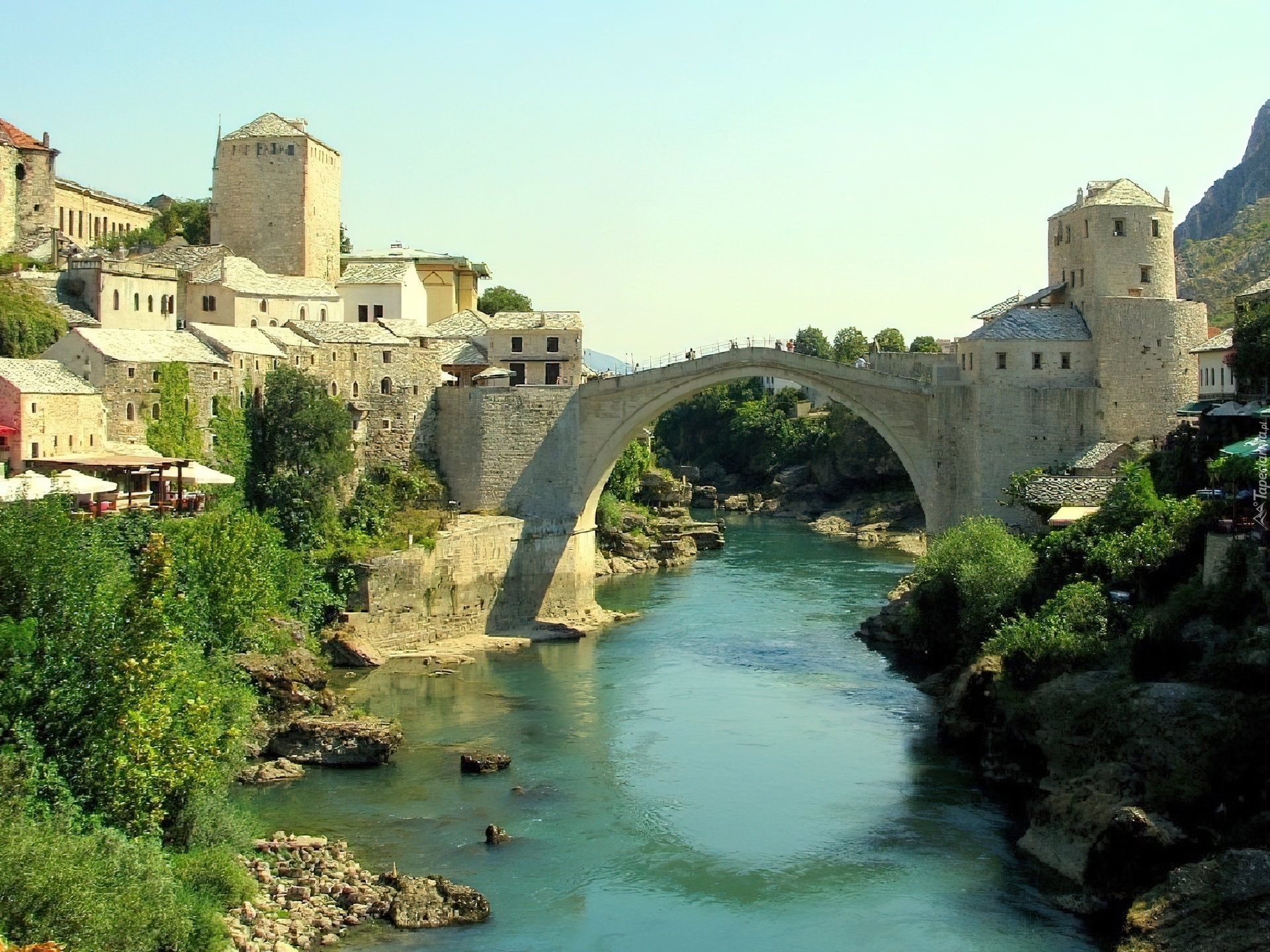 Edytor tapety: Rzeka, Domy, Most, Mostar, Bośnia i Hercegowina