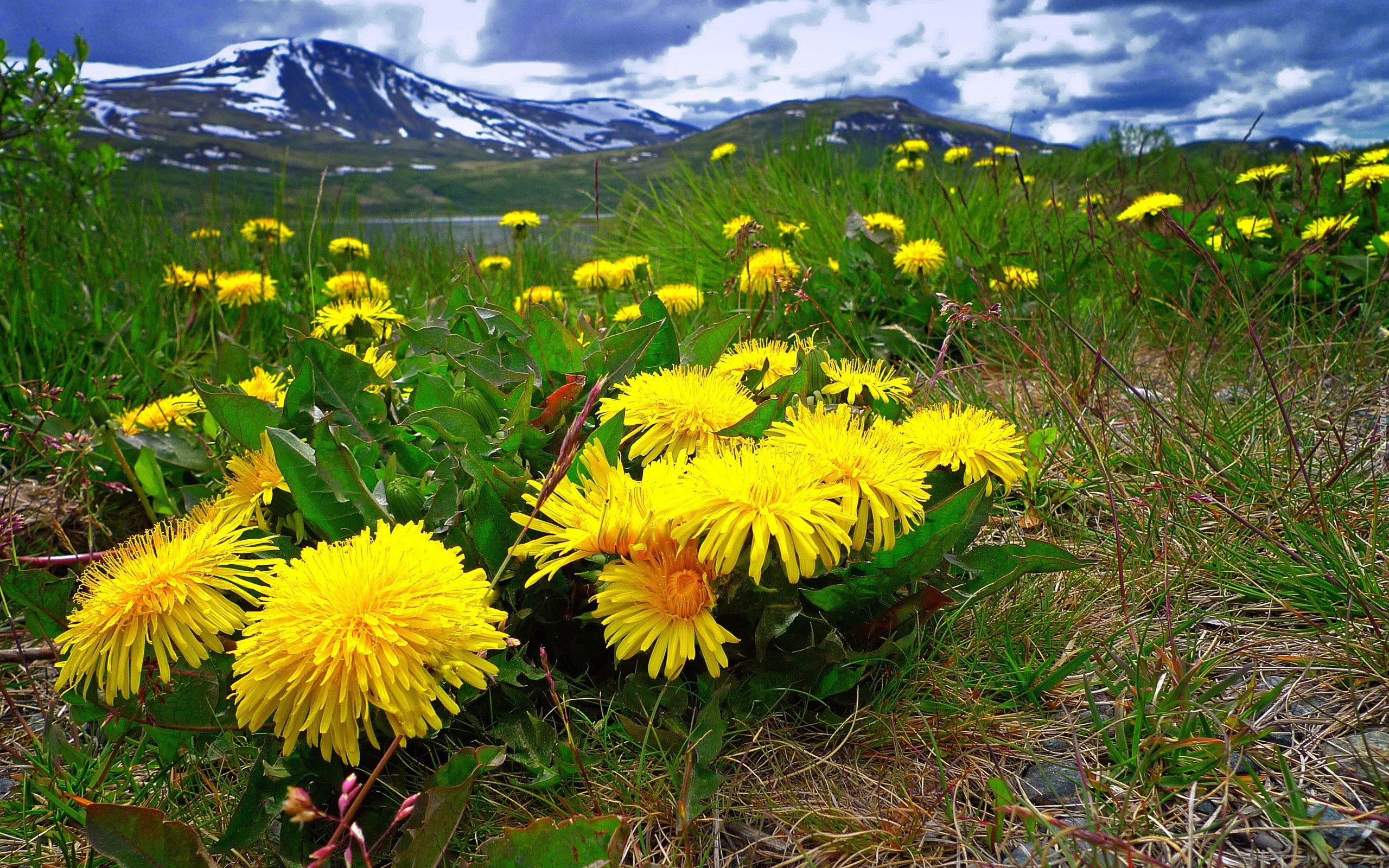 Edytor tapety: Góry, Rzeka, Łąka, Kwiaty
