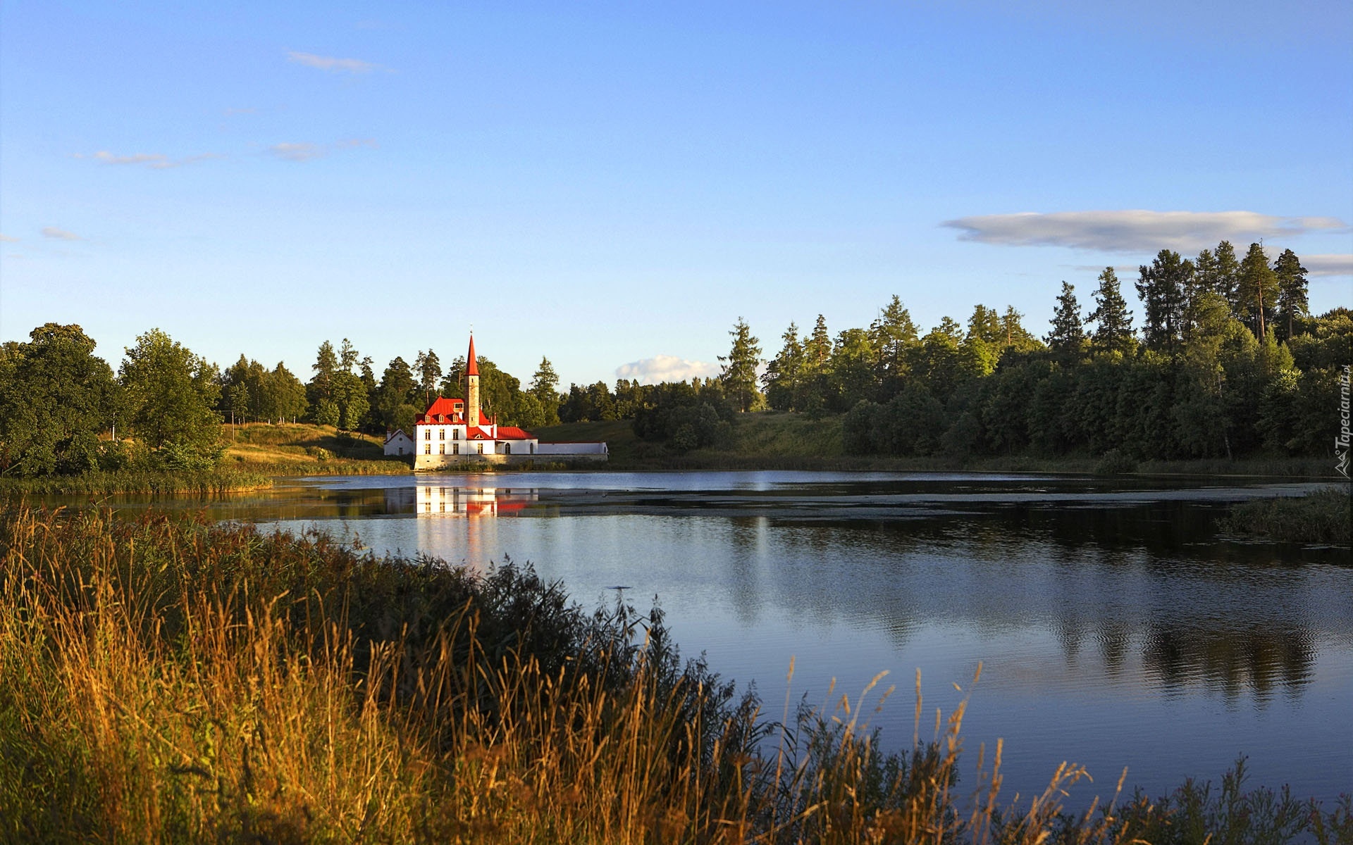 Edytor tapety: Rzeka, Budynek, Las, Trawy
