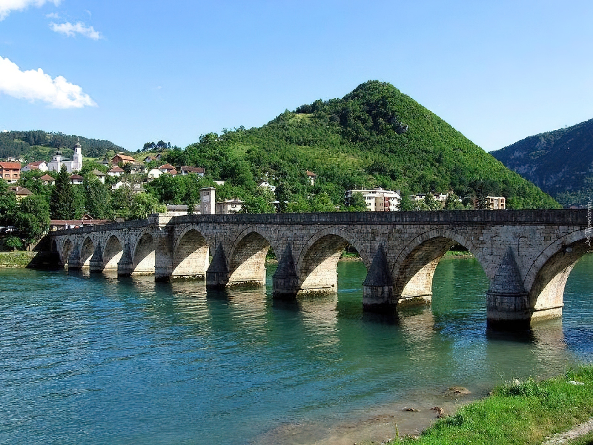 Edytor tapety: Rzeka, Most, Góra, Zabudowania, Hercegowina