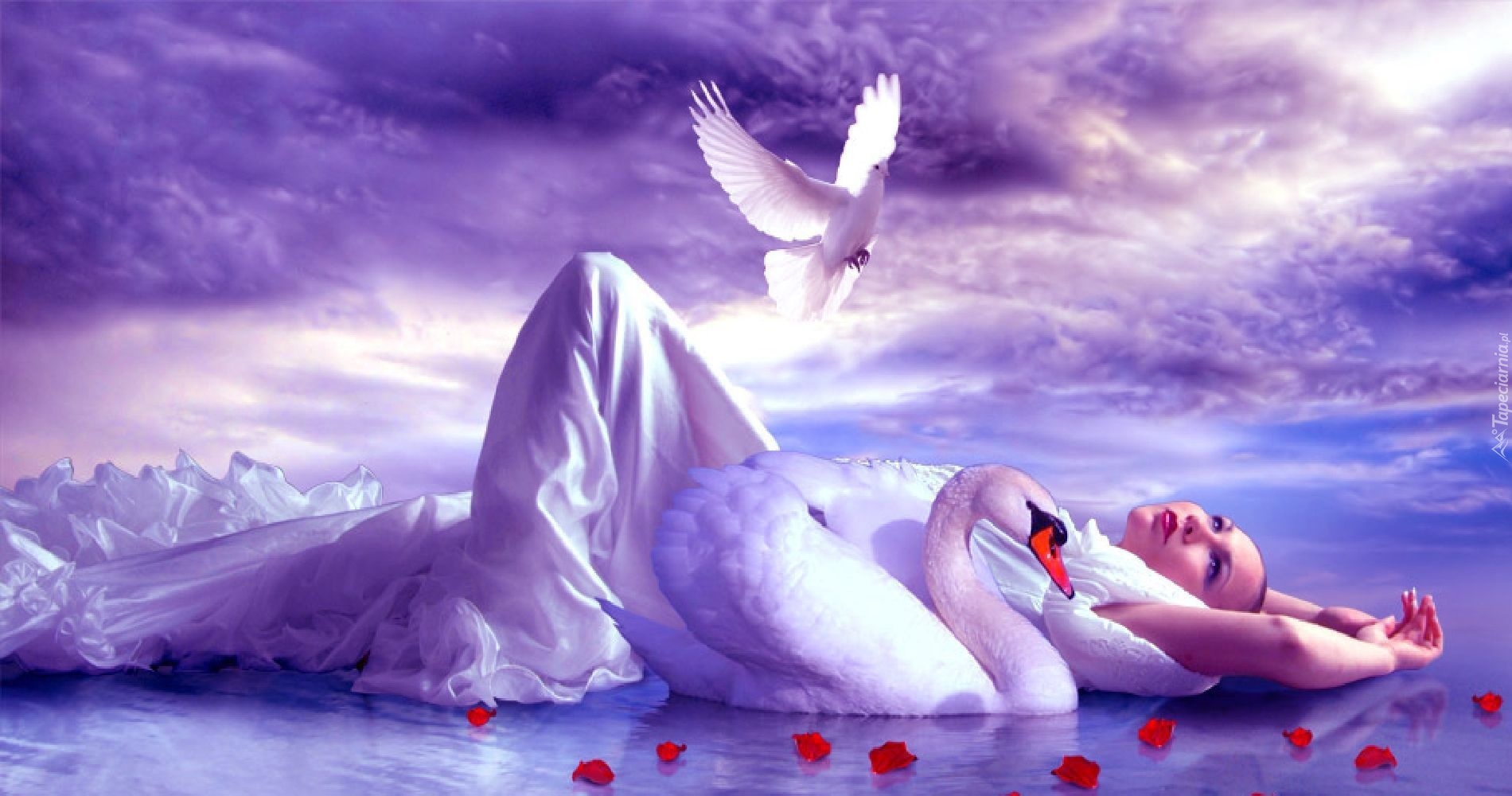 Edytor tapety: Kobieta, Biała, Suknia, Łabędz, Fantasy