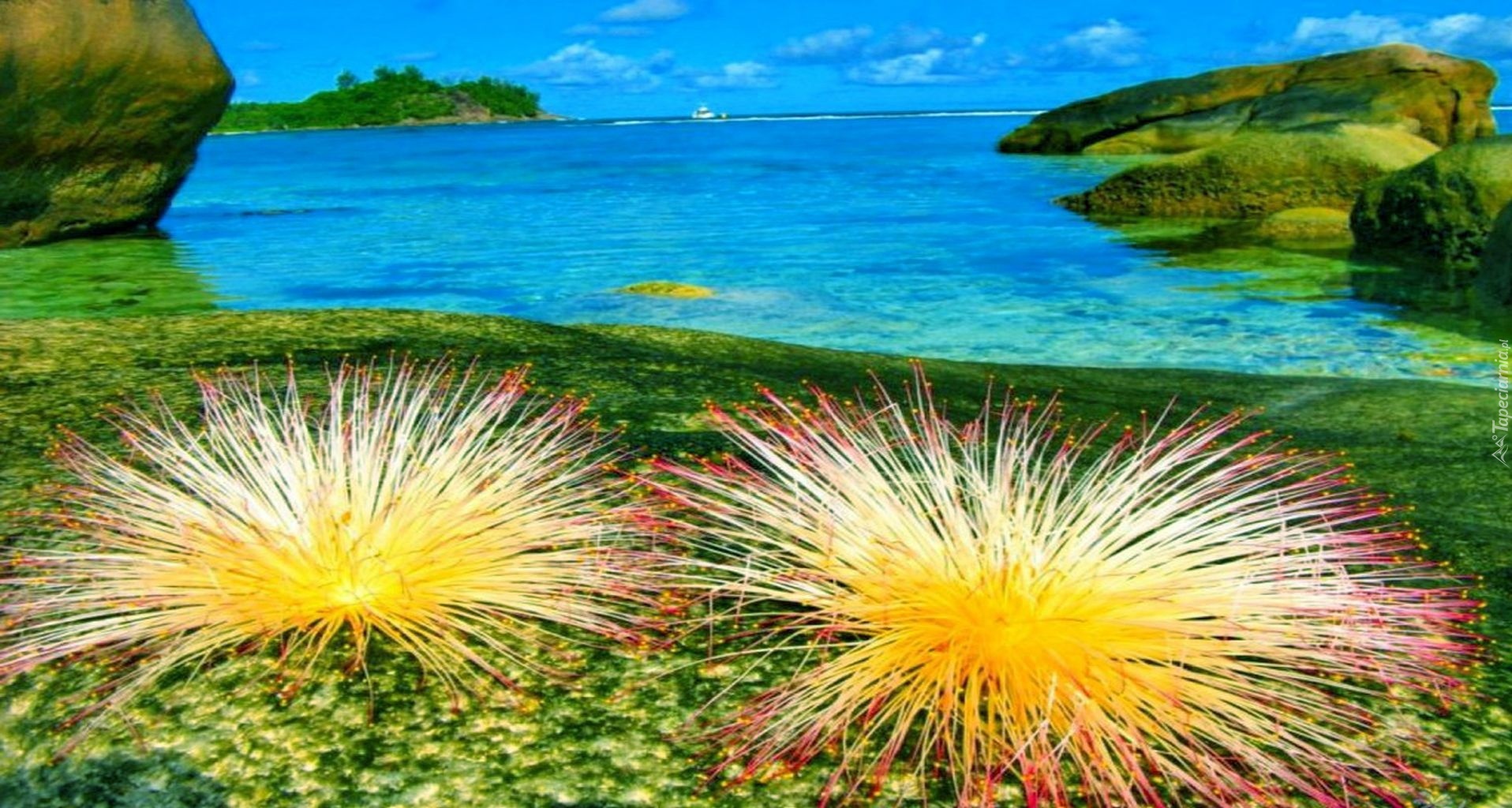 Edytor tapety: Morze, Plaża, Skały, Roślinność, Seszele