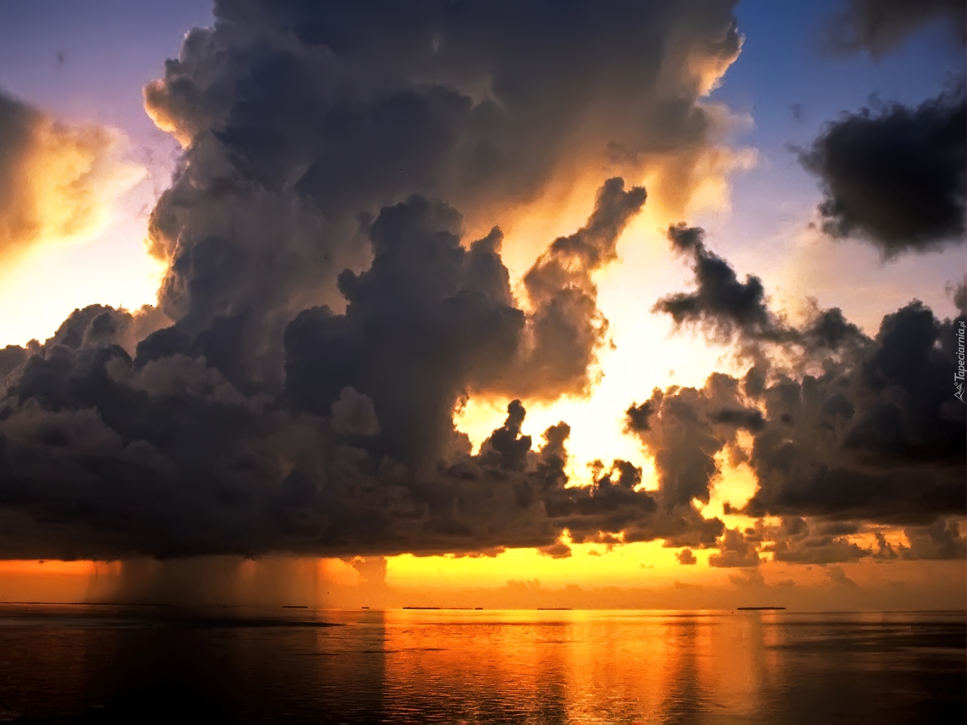 Edytor tapety: Zachód, Słońca, Chmury, Morze