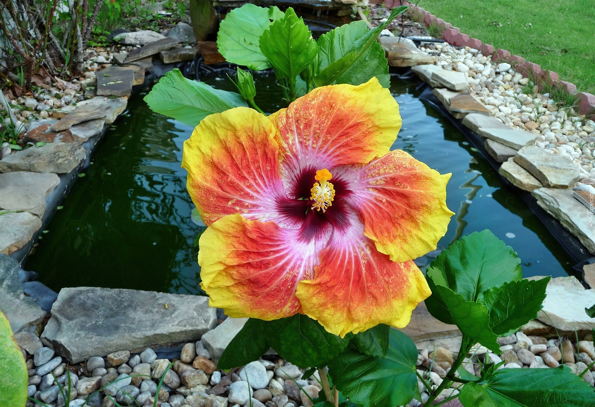 Edytor tapety: Kwiat, Żółto, Czerwony, Hibiskus