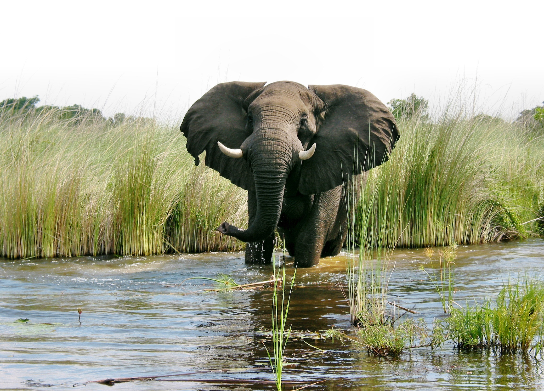 Edytor tapety: Słoń, Woda, Szuwary