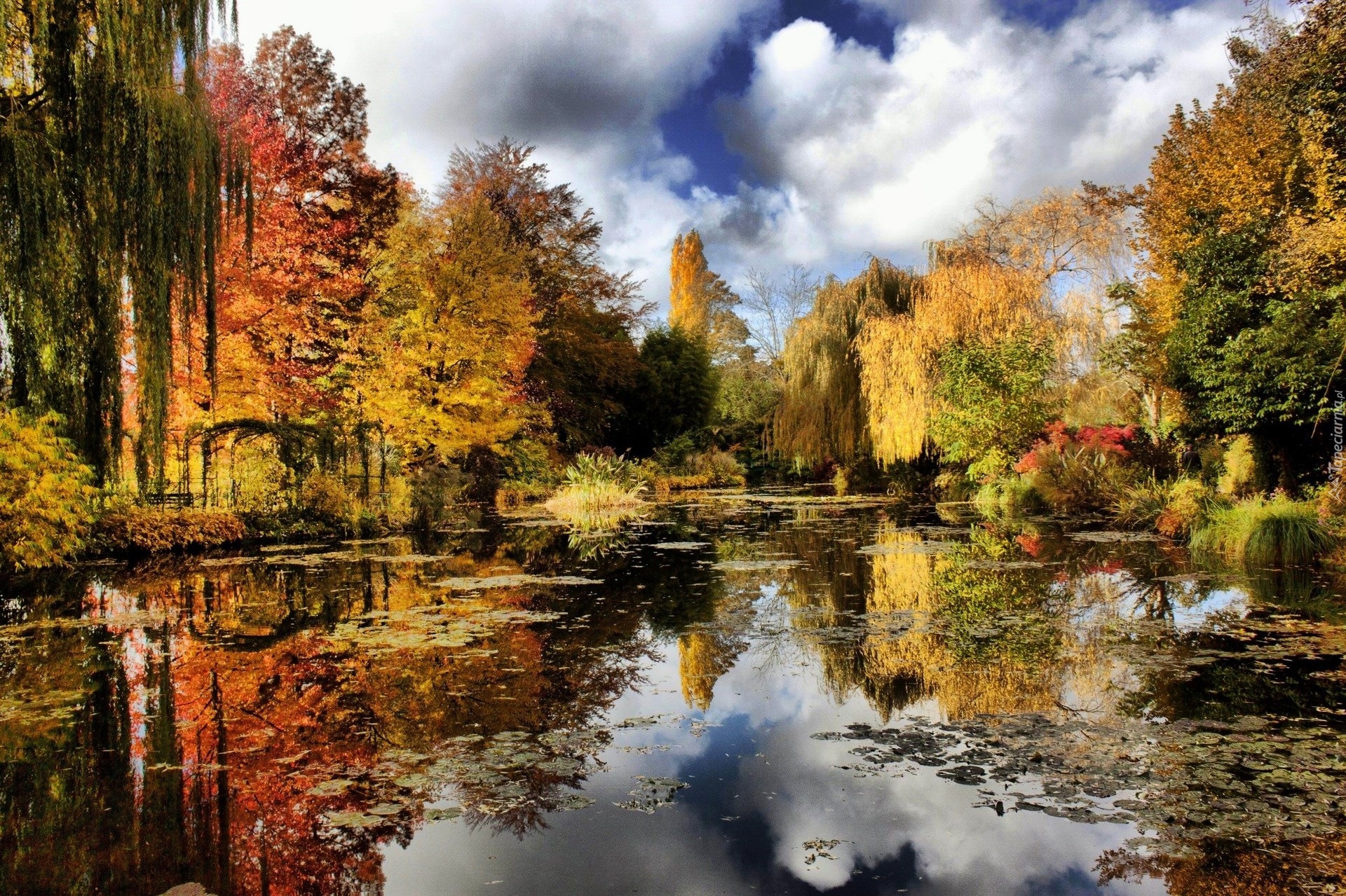 Edytor tapety: Rzeka, Las, Obłoki, Odbicie