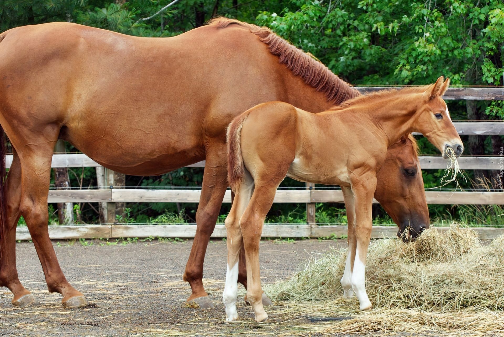 Edytor tapety: Konie, Klacz, Zrebię, Siano