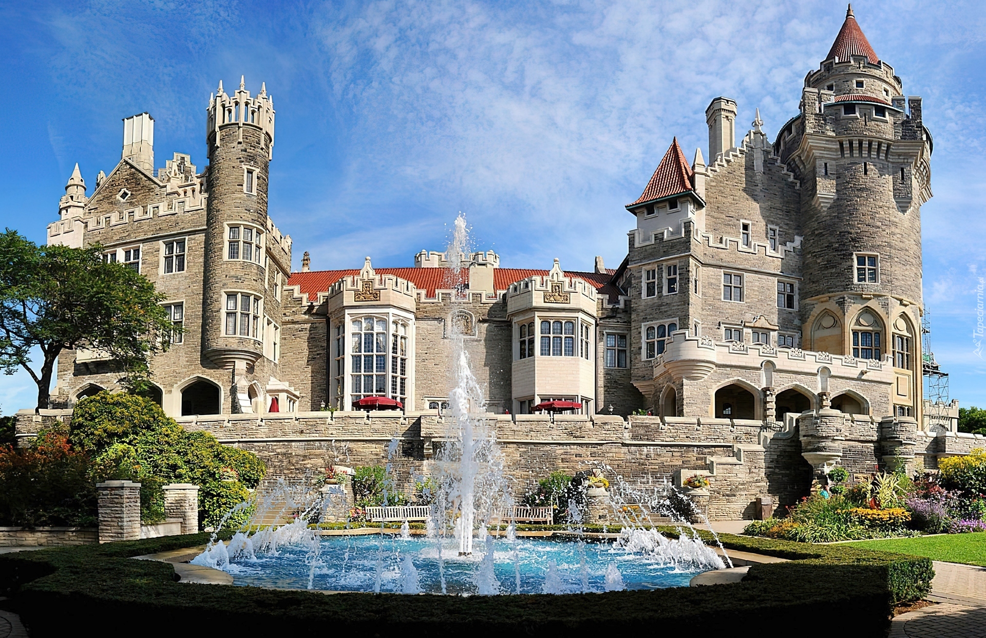 Edytor tapety: Zamek, Fontanna, Ogród