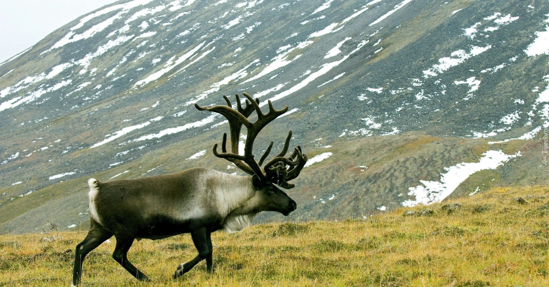 Edytor tapety: Karibu, Poroże, Łąka, Góra