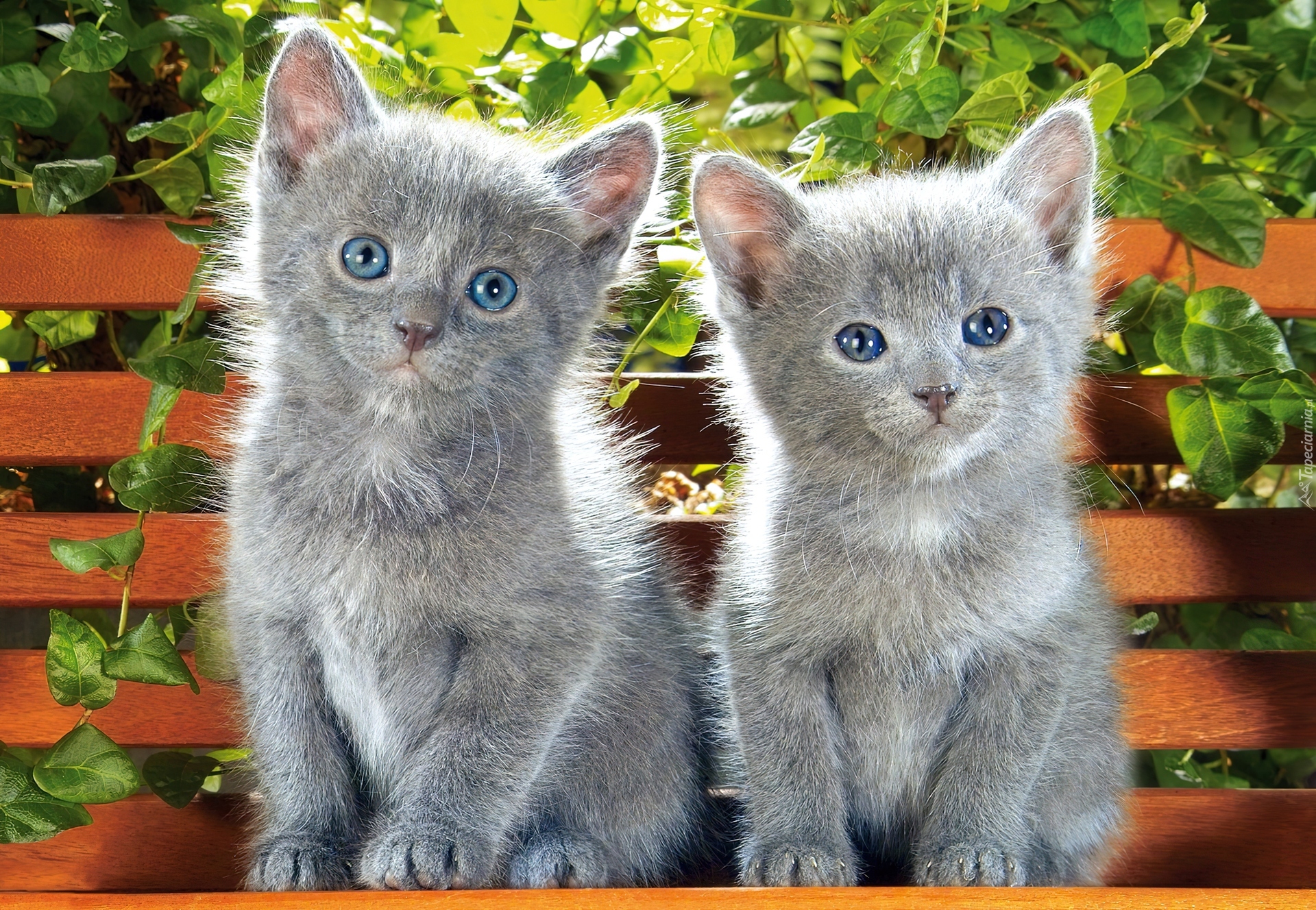 Edytor tapety: Dwa, Szare, Kotki, Ławka