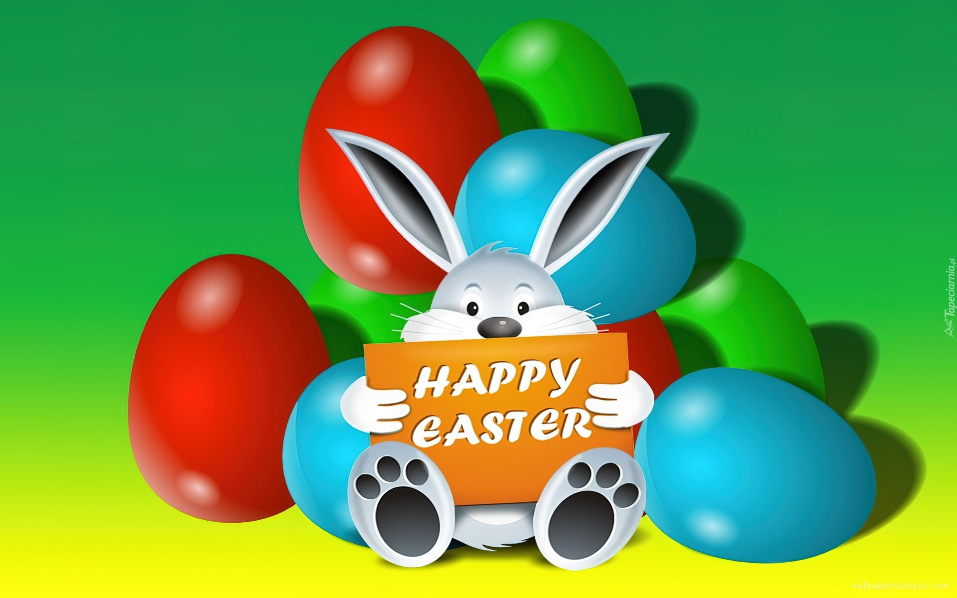 Edytor tapety: Wielkanoc, Kolorowe, Pisanki, Zajączek