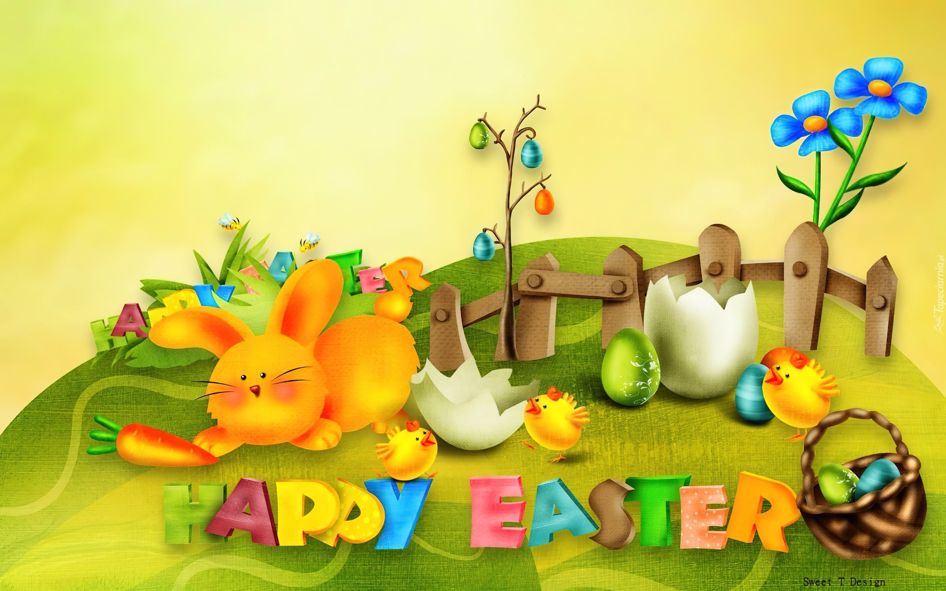 Edytor tapety: Wielkanoc, Zajączek, Pisanki, Kurczaczki, Kwiatki