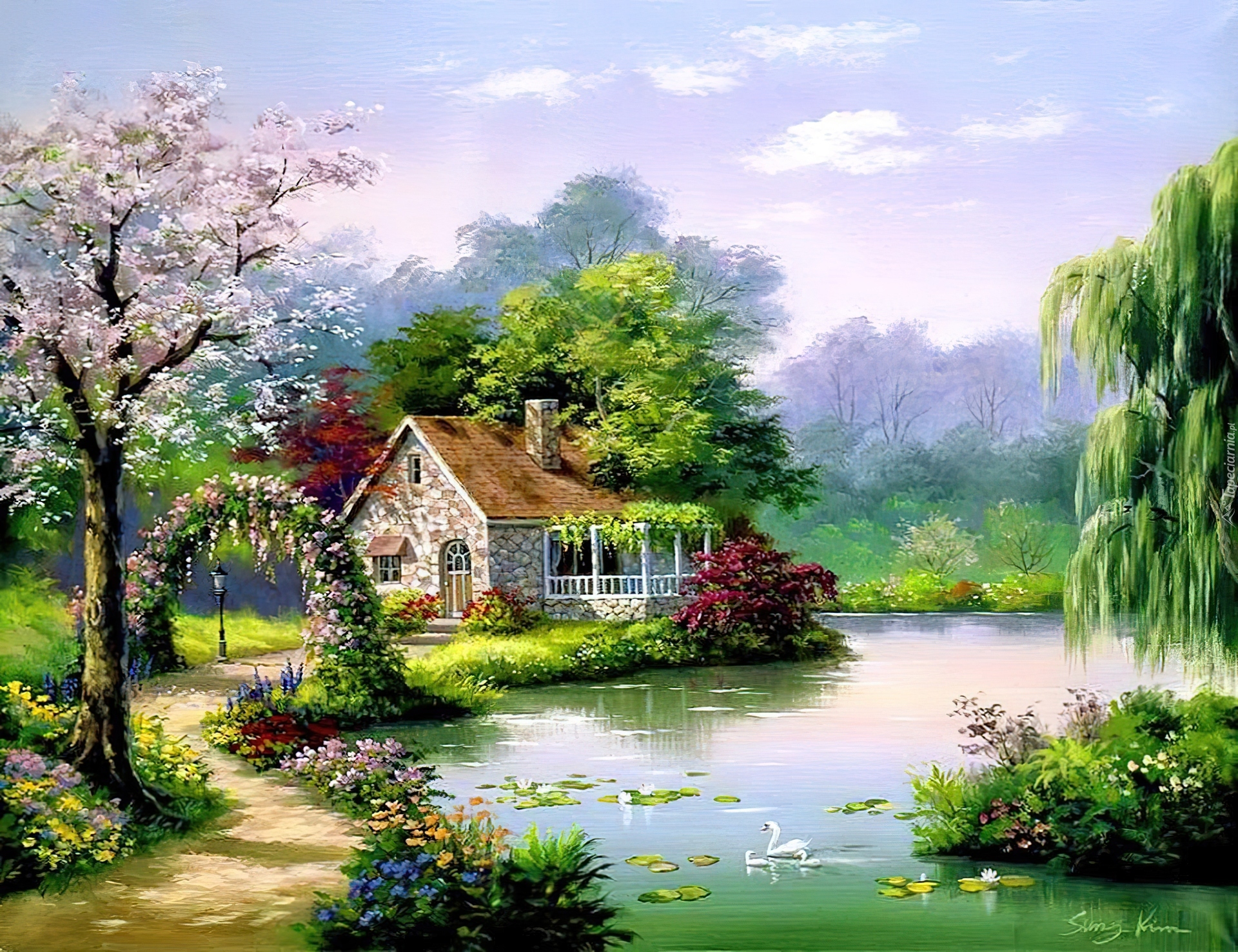 Edytor tapety: Dom, Droga, Staw