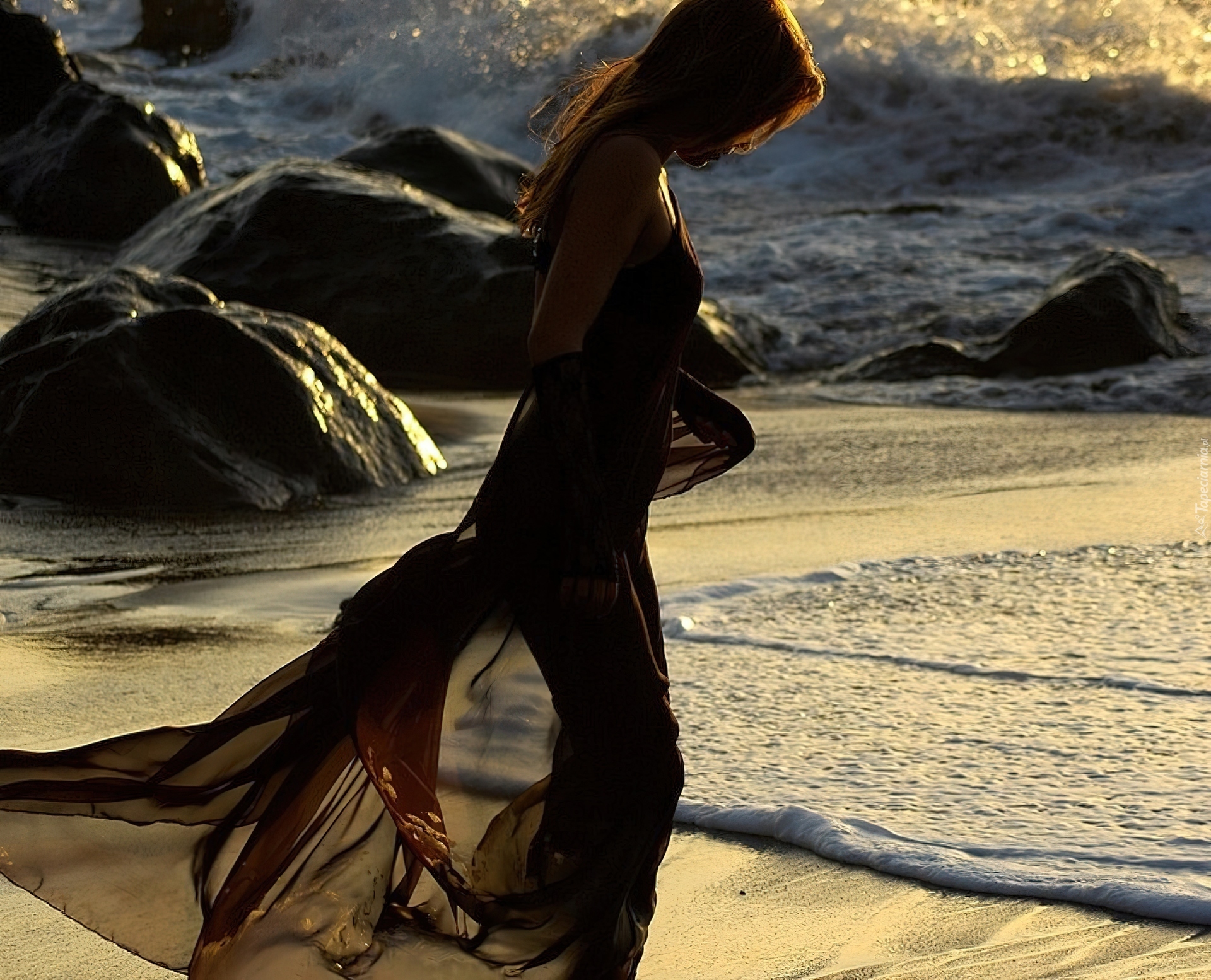 Edytor tapety: Kobieta, Plaża, Morze, Fale