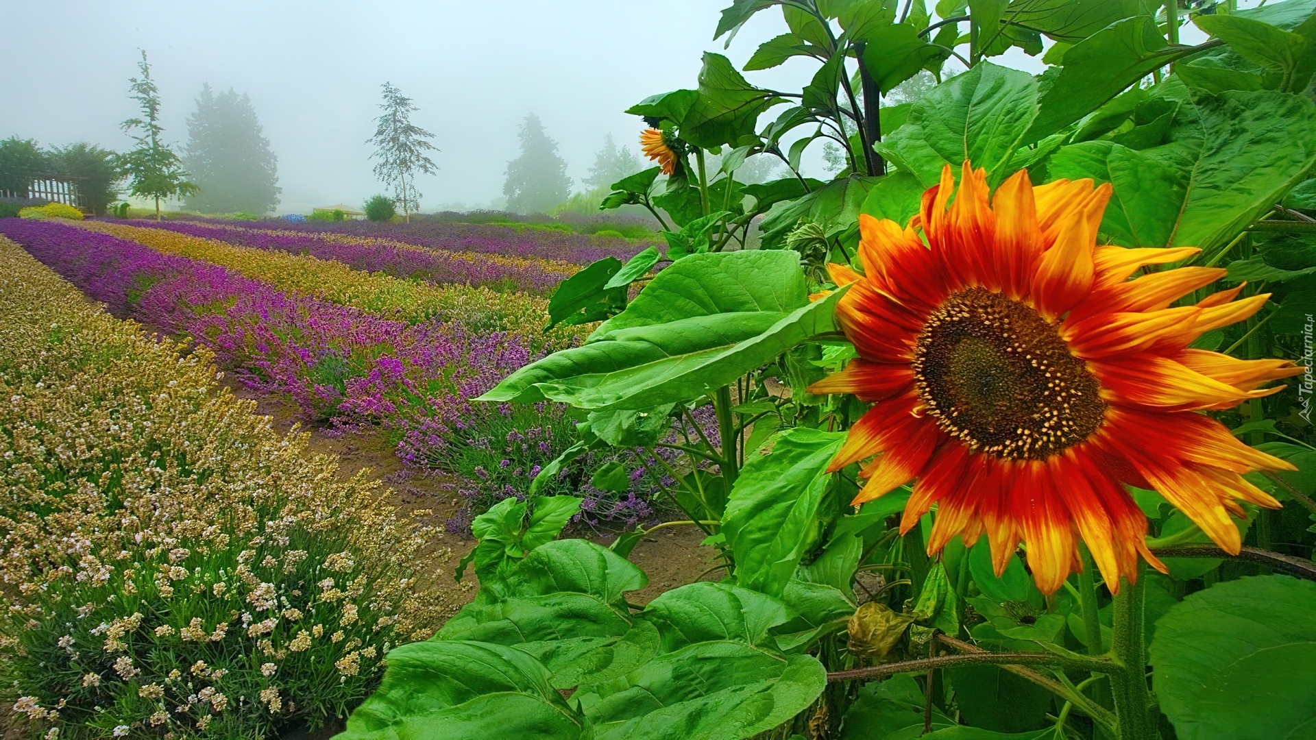 Edytor tapety: Słonecznik, Zielone, Liście