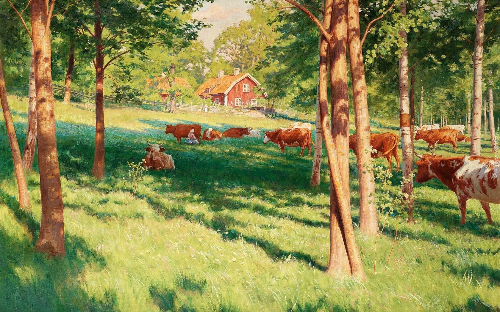 Edytor tapety: Łąka, Pastwisko, Krowy, Drzewa
