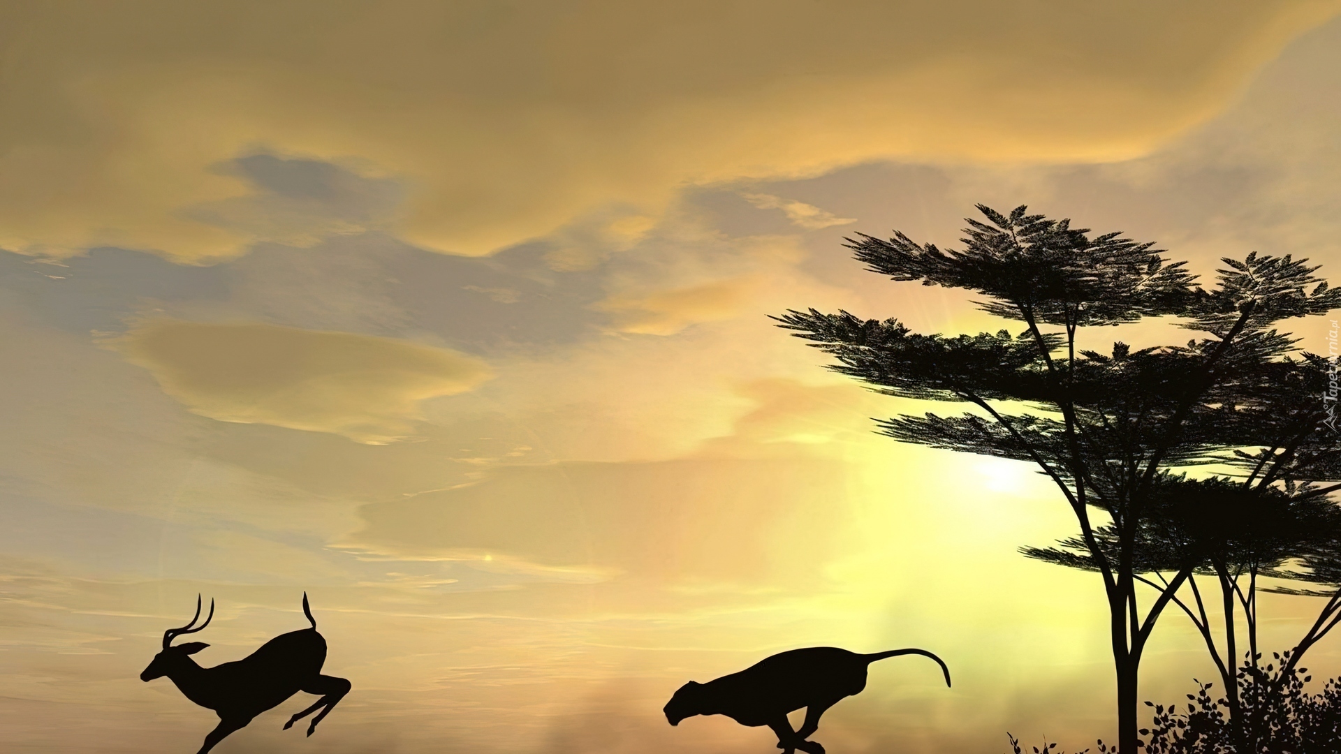 Edytor tapety: Antylopa, Gepard, Drzewa