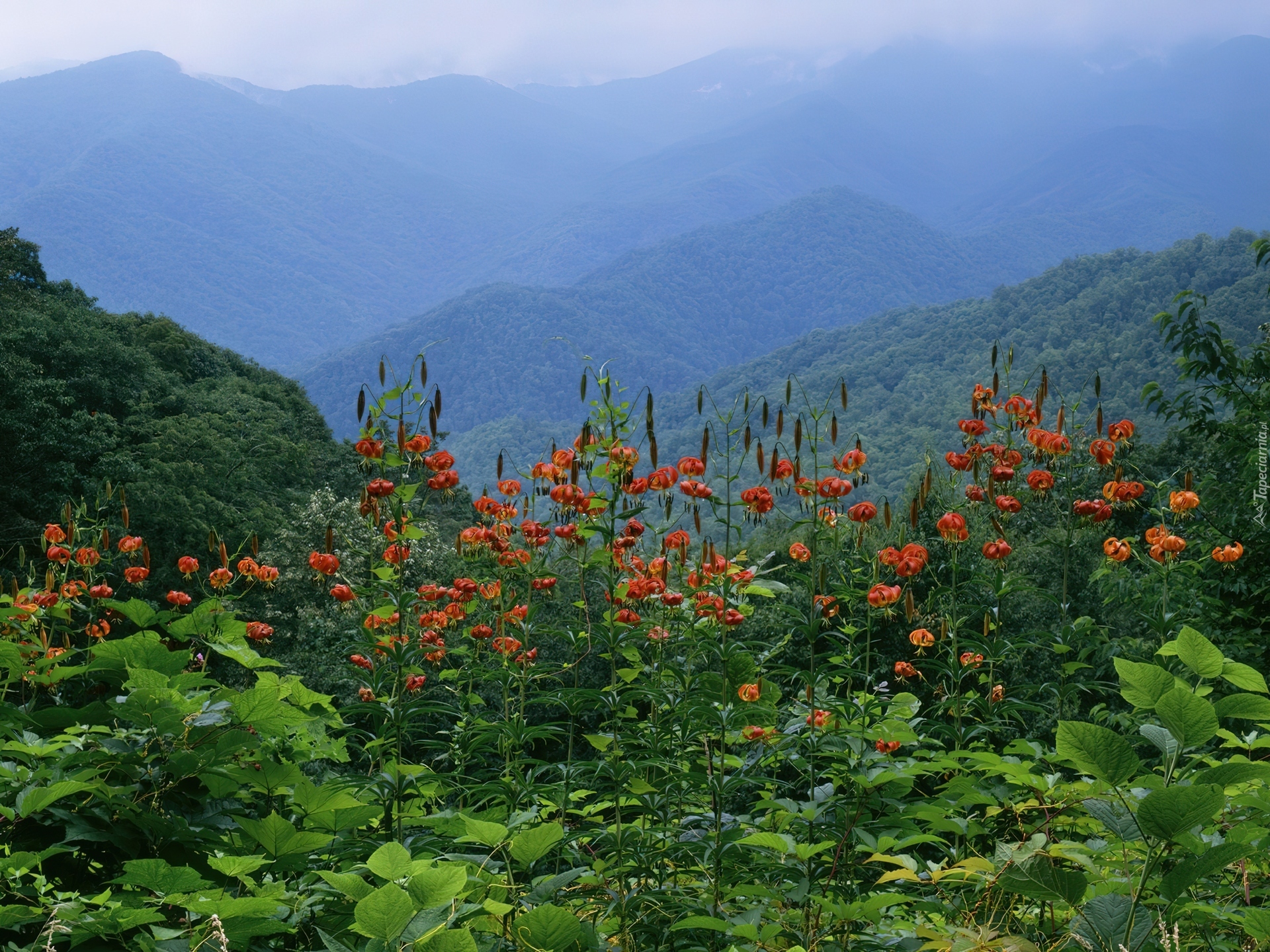 Edytor tapety: Zalesione, Góry, Kwiatki