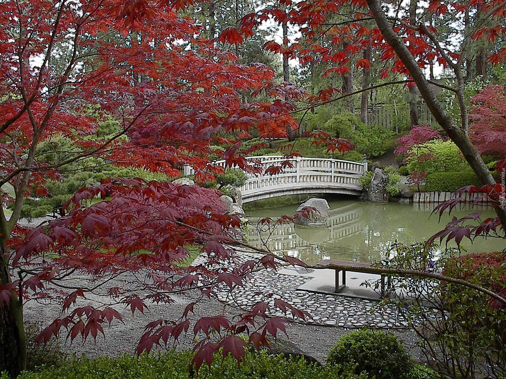 Edytor tapety: Park, Mostek, Staw, Drzewa
