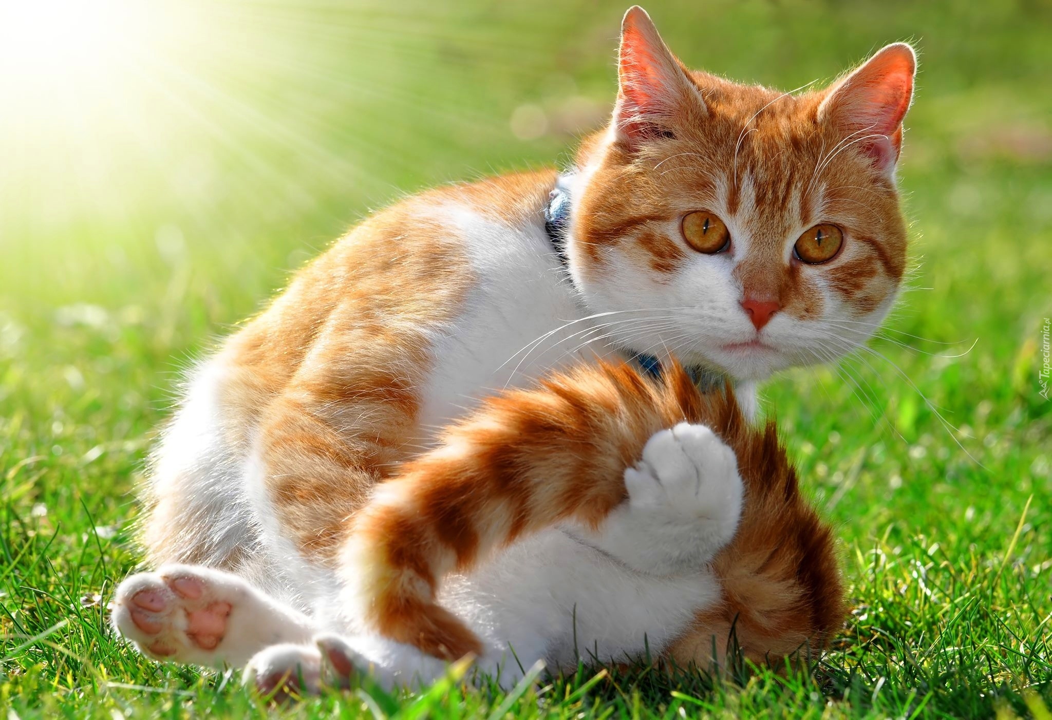 Edytor tapety: Kot, Trawa, Promienie, Słońca