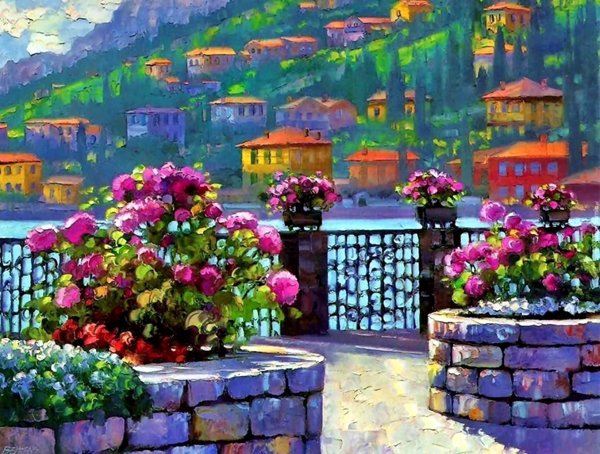 Edytor tapety: Taras, Wybrzeże, Domy, Kwiaty