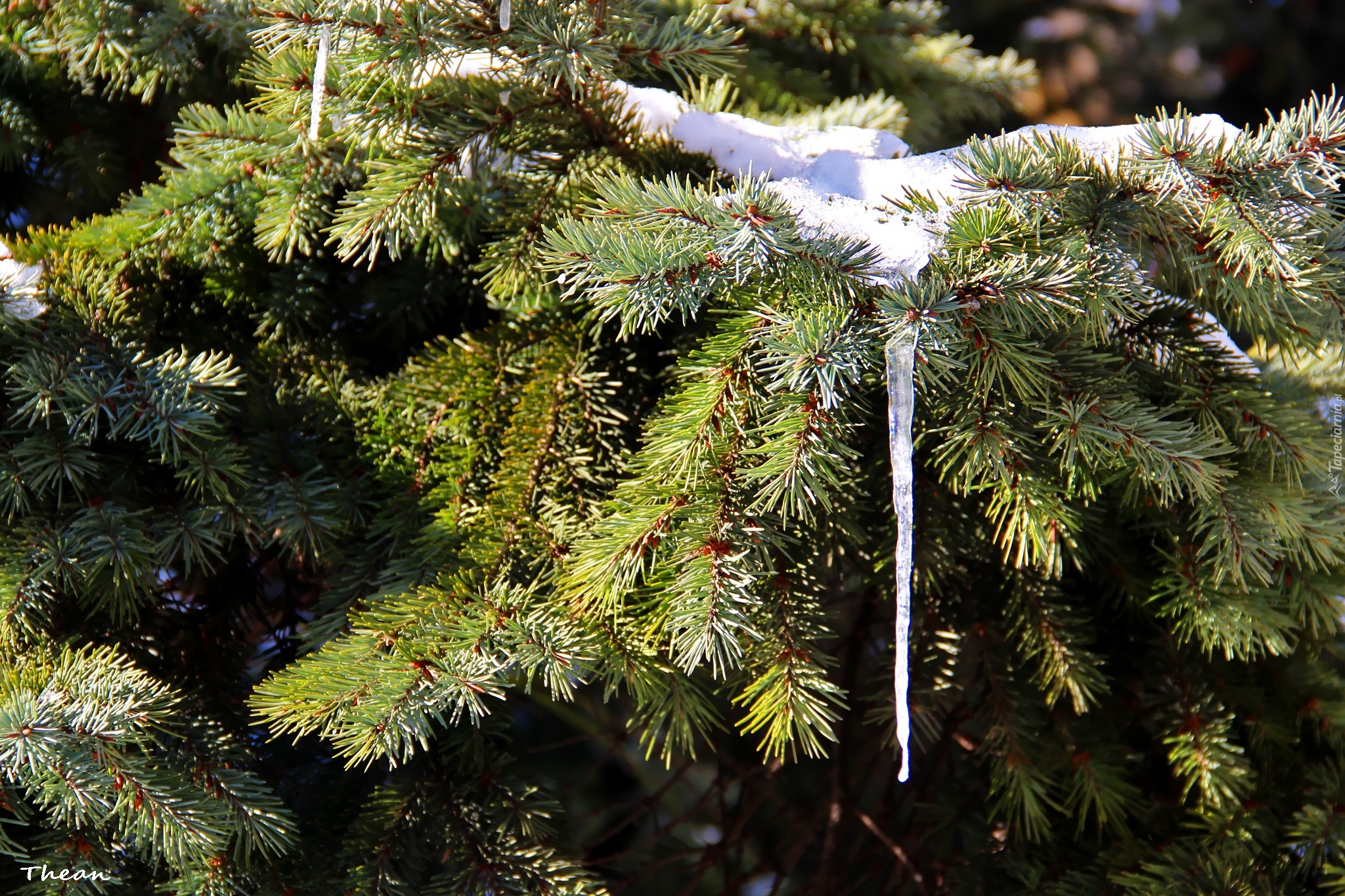 Edytor tapety: Jodła, Wiszący, Sopel, Zima