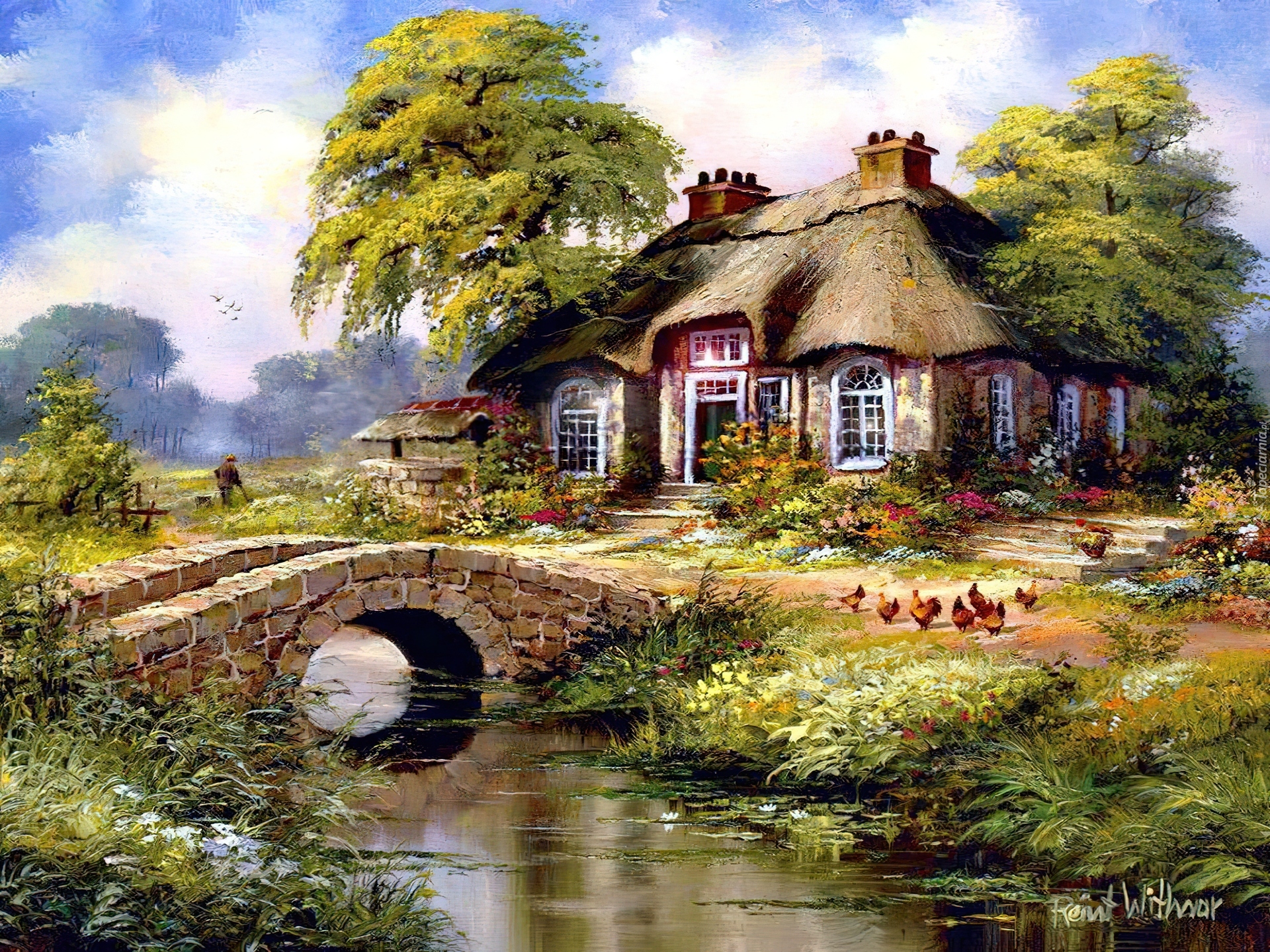 Edytor tapety: Dom, Most, Rzeka, Wiejski, Widoczek