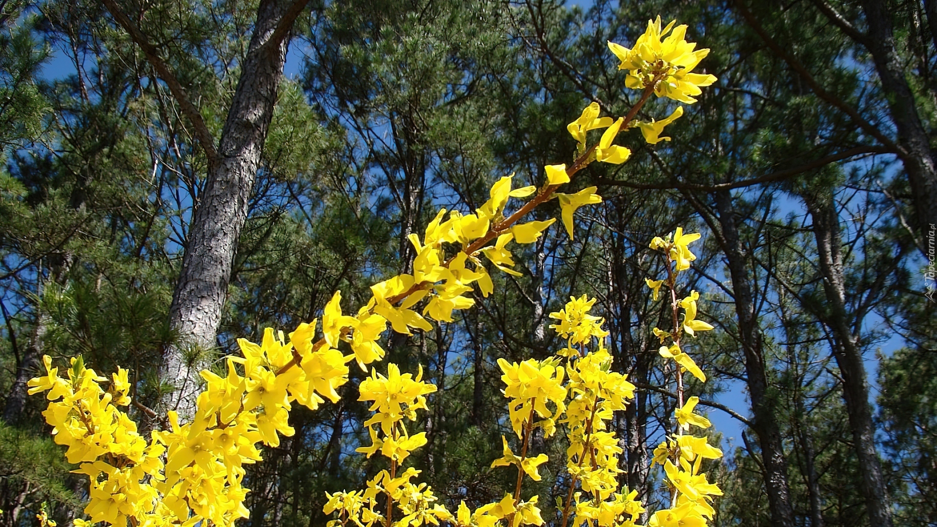 Edytor tapety: Forsycja, Drzewa, Niebo