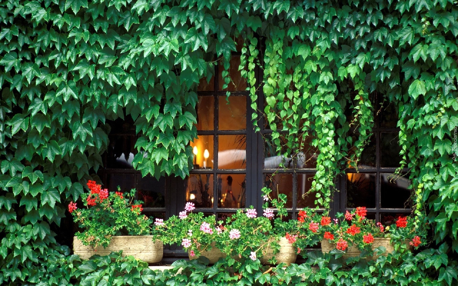 Edytor tapety: Okno, Bluszcz, Kwiatki