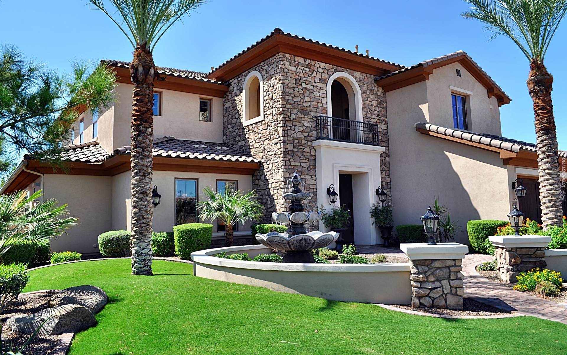 Edytor tapety: Dom, Willa, Fontanna, Ogród