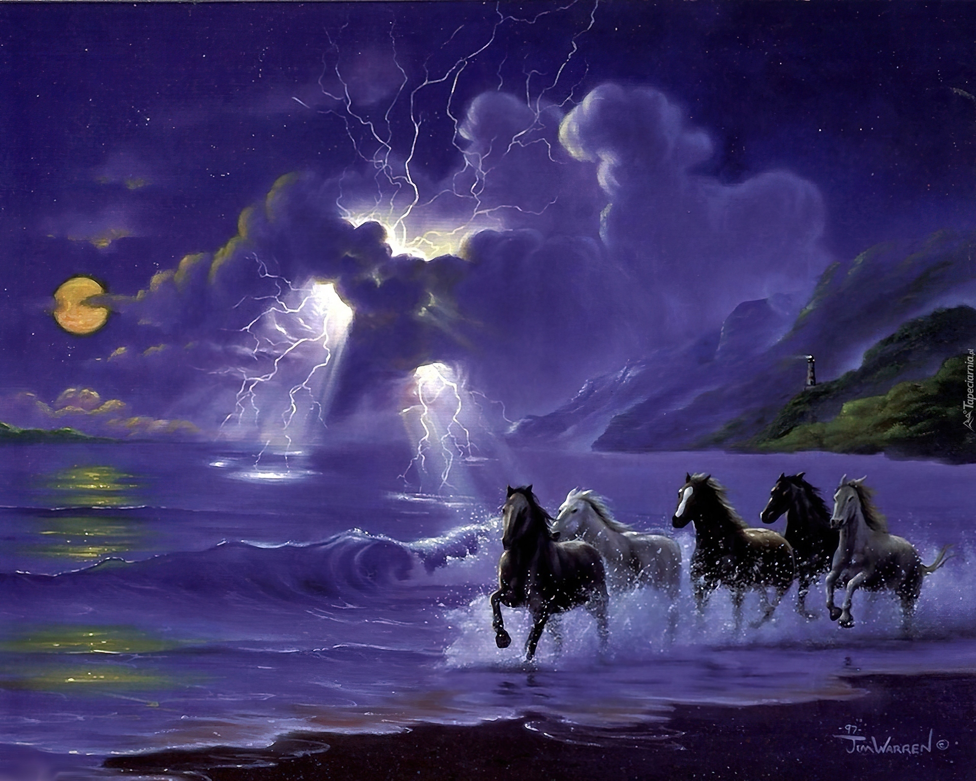 Edytor tapety: Konie, Morze, Plaża, Noc, Księżyc