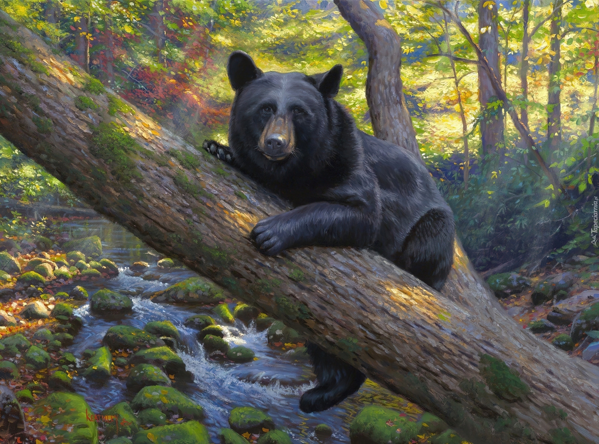 Edytor tapety: Las, Pień, Drzewa, Niedźwiadek