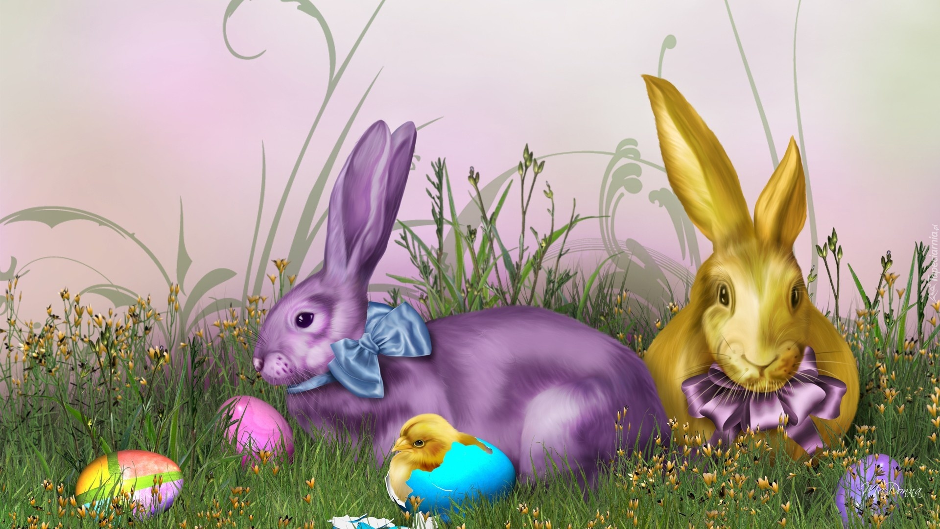 Edytor tapety: Wielkanoc, Pisanki, Kurczaczek, Trawa