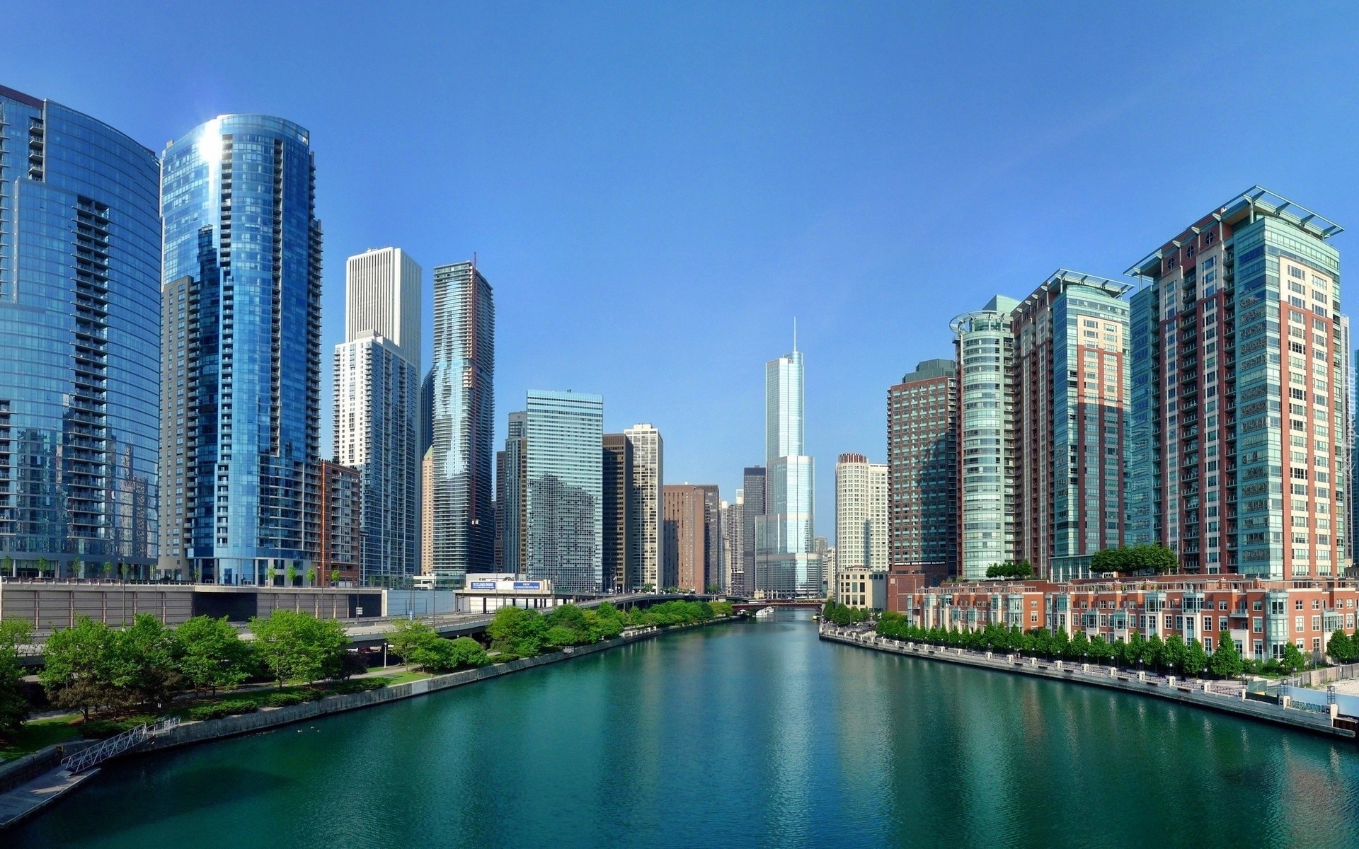 Edytor tapety: Drapacze, Chmur, Rzeka, Chicago, USA